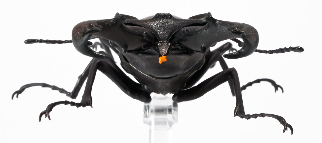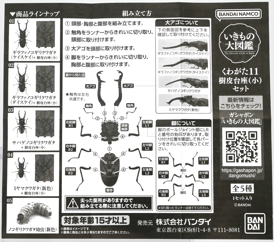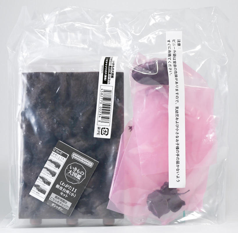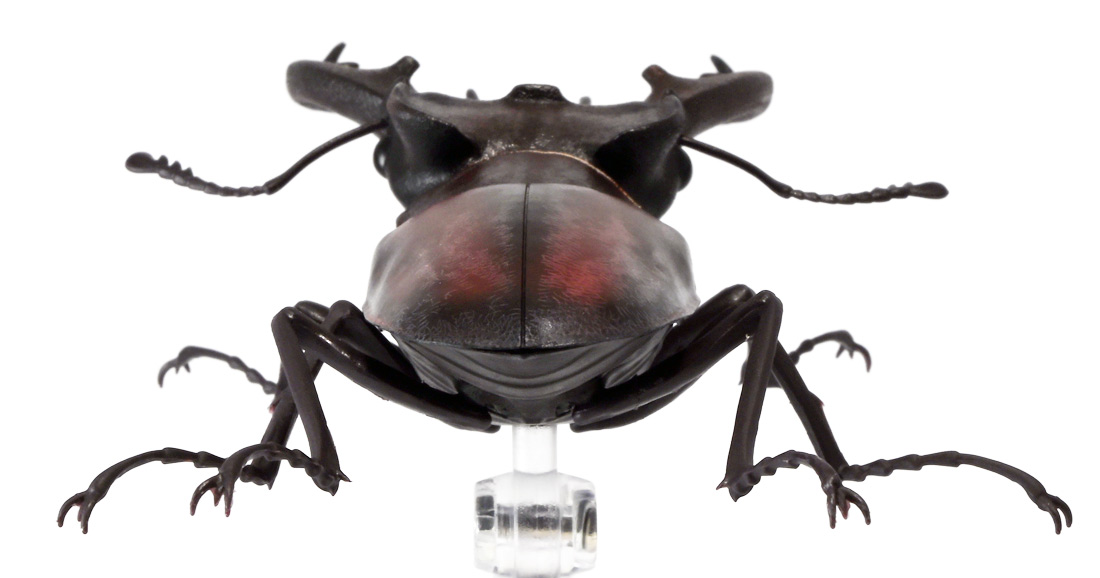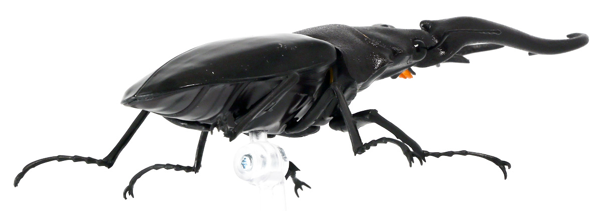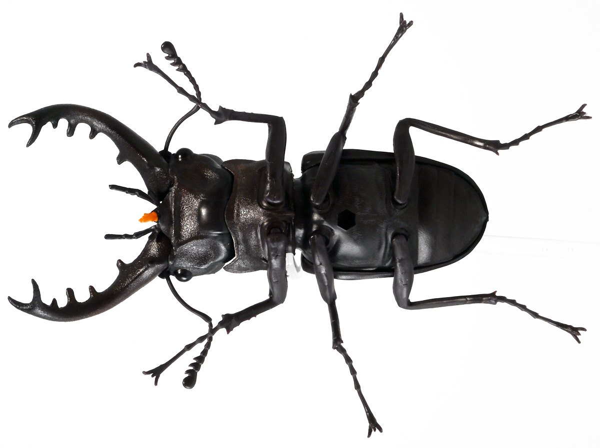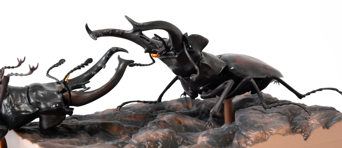 ■バンダイ いきもの大図鑑 くわがた11 樹皮台座(小)セット ギラファノコギリクワガタ(ダイスケイ) ![]() ガシャポンオンライン限定の一回650円ガチャ(+送料)。 2025年9月30日〜11月10日受注、2026年1月30日着弾でした。 ![]() ラインナップは「ギラファノコギリクワガタ(ケイスケイ)」、「ギラファノコギリクワガタ(ダイスケイ)」、 「サバゲノコギリクワガタ」、「ミヤマクワガタ(新色)」、 「ノコギリクワガタ幼虫(新色)」となっており、当選確率は全て20%均一アソート。 このうちノコギリクワガタ幼虫のみオンライン限定となっており、 一般販売の自販機筐体版では「コンフキウスノコギリクワガタ」が代わりにラインナップされているぞよ。 また、実機版は500円であるのに対し、 オンライン版は650円で、幼虫を除くラインナップに「樹皮台座(小)」がおまけに付く違いがある。 ![]() 従って、オンラインを回す人は全員幼虫狙いとなるのだが・・・ おっと・・・今回の中身は「ギラファノコギリクワガタ(ダイスケイ)」だったぞよ。 ギラファは2種封入で確率40%を占めており、彩色箇所も少ないのでハズレ枠。 ハズレが人気のギラファとは豪華な弾であるぞよ! ![]() 東南アジアに広く分布するギラファノコギリクワガタは「giraffa」、 つまりキリンの名を冠された通り、世界最長クラスのクワガタムシであるぞよ! 多様なノコギリクワガタ属(Prosopocoilus)の中でギラファノコギリクワガタは9亜種知られており、 今回はフィリピンのネグロス島、バナイ島、シブヤン島などで見られる「ダイスケイ」と、 インドネシアのロンボック島、スンバワ島、サンゲアン島、フローレンス島、スンバ島などで見られる「ケイスケイ」 2亜種が一部造形違いでラインナップされているぞよ。 ![]() 学名は記載した水沼哲郎氏が長男・次男に献名したものである。 このうち、ケイスケイはギラファノコギリクワガタの最大種であり、全長は12.2センチにも達すると言う。 ダイスケイも負けておらず、11.94センチの記録を持つぞよ。 ![]() さて、ギラファノコギリクワガタと言えば大人気のクワガタで玩具も様々登場しており、 過去にもアニアレビュー辺りで何度か取り上げているのでさくっと進めよう! 「いきもの大図鑑」においてギラファはやはり過去に幾度かラインナップされており、 初弾となる「くわがた(2020年10月)」から真っ先に登場。 この時は玩具然としていたが、 2023年8月には「いきもの大図鑑プレミアム ギラファノコギリクワガタ」として7700円の超豪華決定版が発売されている。 その後、「いきもの大図鑑アドバンス ギラファノコギリクワガタとマンディブラリスフタマタクワガタ(2025年2月)」 では廉価版ながら飛行形態を備えたアドバンスバージョンとして再登場し、 さらに今回は500円の簡易仕様となって三度登場したと言う流れであるぞよ。 ![]() プレミアム以降のギラファでは実物標本からのCTスキャンを原型に用いている事がウリで、 造形は本物に正確であるぞよ。 更に、プレミアムでは18.5センチ、 アドバンスでは16.5センチと超絶拡大模型だったが、本商品はより小さく、 全長は約14.5センチ! やはり本物よりは大きいが、掌に乗せた時の存在感ではかなりリアルな塩梅となっているのだ! ![]() ぱっと見の再現度では標本と見紛う仕上がりだが、一方で可動域は大幅に減らされており、 可動箇所は12箇所の簡易仕様。 飛行形態に変形できず、腹部のくにくに可動もオミットされてしまったぞよ。 従ってプレミアム、アドバンスは上位版として一定の地位を保っていると言える。 500円弾は繊細な部分が固定なので破損を気にせず気軽の弄繰り回せるのが嬉しいぞよね! ![]() 沢山わちゃわちゃ並べるならこの500円弾が取り回しやすくコレクション性も高いのです! ![]() オンライン限定の樹皮台座に乗せてみよう! こちらはシリーズではお馴染みとなった共通仕様でいつものやつだ。 ![]() 簡易可動とは言え、自慢の大顎の動きは健在! 本弾では大顎の接続がダブルボールジョイントとなり、 よりリアルでスムーズな動きが可能となっているぞよ。 ![]() さらに過去弾で見られた頭部、胸部のざらざら加工も受け継がれている。 いきもの大図鑑あるある、受注時の見本画像と製品で全然仕様が違う・・・! 見本時はつるつるだったものが、製品ではざらざらになっているワケです。 こりゃ見本を見て回す我々からしたら実際の製品と仕様が異なると言うのは厄介な点でもあるのですが・・・ ことざらざら加工に関しては、わたくしはクワガタの雰囲気を良く再現出来ていると好感を持っているので アリとしたい・・・! 彩色がグレードダウンしている場合は勿論ナシであるぞよ・・・! ![]() 樹皮台座は過去弾と連結可能! 樹上の対決を再現しようっ! ![]() 更に汎用台座のベースと合体する事で立てて飾る事も出来ちゃいます。 リアルな「樹」がキミのお部屋にやってくる! いきもの大図鑑は環境ごと飾るフェーズに突入しているのだ・・・!!! ![]() 縦だけ