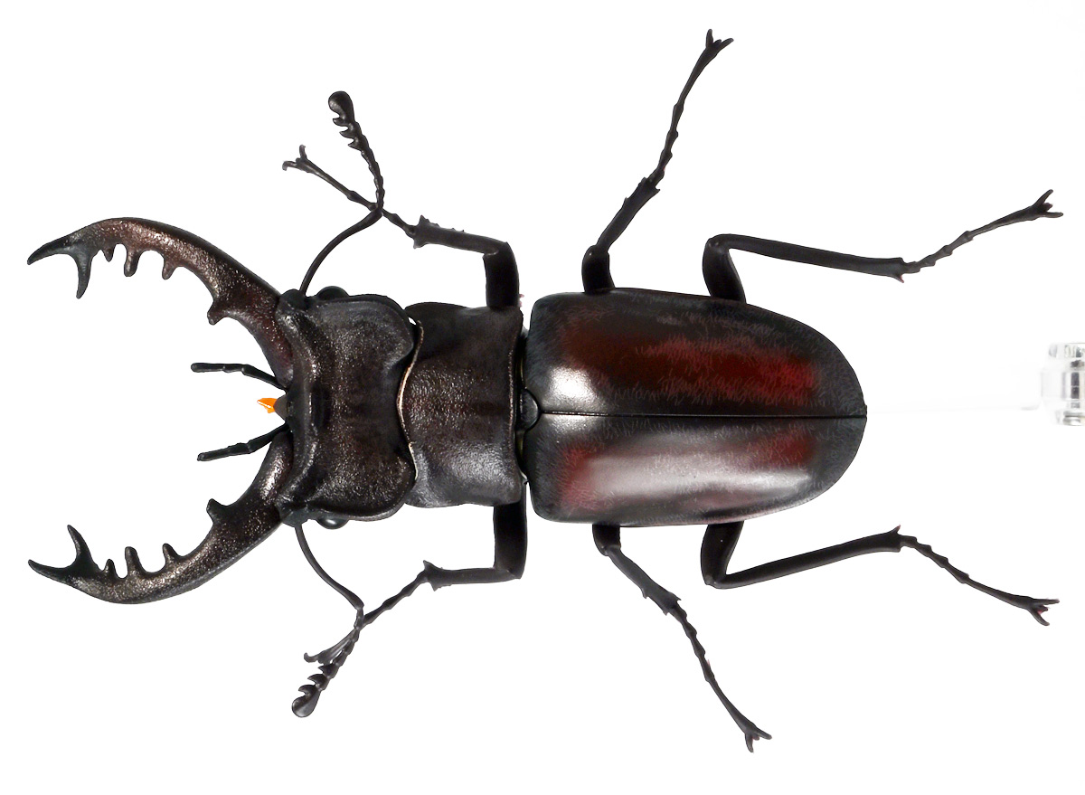 ■バンダイ いきもの大図鑑 くわがた11 樹皮台座(小)セット ミヤマクワガタ(新色) ![]() プレミアムバンダイ限定で2025年9月30日〜11月10日まで受注された一回650円ガシャポン。 2026年1月30日の着弾だったぞよ。 自販機筐体版は500円で、一部ラインナップが異なる他、樹皮台座が付属しない違いがある。 詳しい事は同弾「ギラファノコギリクワガタ」を先に紹介済みなので、そちらのレビューも参照のことぞ! ![]() 国内で見られる鞘翅目のクワガタムシの中では、飼育下で8センチを超える記録がある大型種。 国内では北海道から九州まで広く分布する普通種で、クワガタの代表格。 ミヤマとは深山であり、深山幽谷とは言わないまでも涼しい山地に見られる種であるぞよ。 学名の「Lucanus maculifemoratus」は「森に棲む斑紋の脚を持つもの」の意。 その名の通り雌雄共に脚の腿節にオレンジの部分がある事で見分ける事が出来る。 ![]() 全体に赤褐色から黒褐色をして、大型個体ほど頭部後方に耳状突起が張り出し、勇ましい姿をする。 これは大顎を閉じる筋肉を収める部位。 従って突起が発達すればするほど、挟む力が強靭になると言うワケぞ。 緩やかにアーチを描くオスの大顎は先端が二股に別れ、内歯の並びによっていくつかの型に分けられる。 即ち基本型、エゾ型、フジ型であるぞよ。 本商品の場合は大顎根元の第1内歯が第3内歯より短いのでエゾ型と思われるぞよ。 これは標高1000メートル以上の高標高や北海道など、より寒冷な地域で見られる事の多い型とされる。 大顎の開きが最も大きいのもこのエゾ型なのだ。 かつては別亜種と見なされ、「エゾミヤマクワガタ」と区別されていたが、 1972年にシノニムと確認され、型として名前を残すばかりとなっているぞよ。 このような形態の変化は、前蛹期の温度に左右されていると考えられている。 普通温暖な地域ほどフジ型の成虫が見られ、寒冷な地域ほどエゾ型が見られるという事は、 蛹の時の温度が高いとフジ型に、低いとエゾ型になるというワケぞよね! つまり、エゾ型の成虫を持って帰って暖かい所で繁殖させると、その子はフジ型になっちゃう確率が高いのだ。 一説によれば、これはそれぞれの地域で競合する他の鞘翅目昆虫、 クワガタやカブトに対抗する為の形態の変化ではないかと言われているぞよ。 ![]() ミヤマクワガタは山地に見られる広葉樹林を利用して暮らしている。 国内ではコクワガタやノコギリクワガタらと共に多く見られる普通種のクワガタムシであるぞよ。 と言っても、高温と乾燥が苦手なミヤマクワガタは、 おろかなにんげんどもの暮らすアスファルトの敷かれた街ではなかなか見られないので、 採集しようとしたらちょっとその辺の山に出かけなければならない。 近頃の夏は灼熱地獄なので尚更ぞよね! 成虫は6〜9月にかけて出現、木の根元や洞、落ち葉の下などに隠れている事が多いが、 樹上で活動している時に振動を感知すると、全身を硬直させて死んだふりをする。 つまり、擬死行動を取るぞよ。 従って、クヌギやコナラ、ミズナラなど樹液の出ている樹を蹴り飛ばしたりすると、 驚いたミヤマがぽてっと落ちてくる事があるのだ。 身を守るつもりでおろかなにんげんどもに捕まってしまうとは、おまぬけなヤツであるぞよ〜。 また、灯火に集まる習性が強いので、雑木林の近くにあるコンビニや自販機なんかにも良く集まってきてしまう。 昆虫は何故光を目指すのか。 それは人工の光を月の輝きと勘違いして、天を目指す為であるぞよ。 従って、灯火採集には月の出ない夜を選ぶと良いのだ。 ![]() 性質はかなり狂暴で、複数のオスを同じ虫籠で飼おうものならあっと言う間に殺し合いに発展するぞよ。 繁殖期の6月から9月にかけて、樹液の餌場は即ちメスの取り合いの場でもある。 ミヤマクワガタは自慢の大顎による必殺ハサミギロチンで競合を投げ捨て排除し、 これまた活発なメスを力づくで射止める必要があるのだ。 ミヤマクワガタの世界は弱肉強食であるぞよ!! 交尾の際にはオスの大顎はメスの体を抱え込み、逃げられなくする機能がある。 これが上手くいかないと、時にオスはメスを挟んで殺してしまう事もあるぞよ。 何事も先鋭化すると上手く機能しない事が往々にしてある・・・ほどほどが良いもんだ! 上手く交尾が済むと、メスは朽ち木に程近い土の中や、切り株に卵を産むぞよ。 卵から幼虫が産まれ、成虫になるまでには2〜3年かかるとされる。 ミヤマクワガタはペットとしても大人気だが、高温で飼育すると1年1化で羽化してしまうぞよ。 立派な成虫を得るには、適切な管理と根気がいるのだ。 ![]() さて、ミヤマクワガタは身近で大人気の種であるからして、 「いきもの大図鑑」においても過去に何度かラインナップされている。 2021年8月の「くわがた02」で早くも登場すると、この時は玩具然としていたが、 2024年1月の「くわがた07」では実物標本のCTスキャンから原型が起こされ、 「ミヤマクワガタ(改)