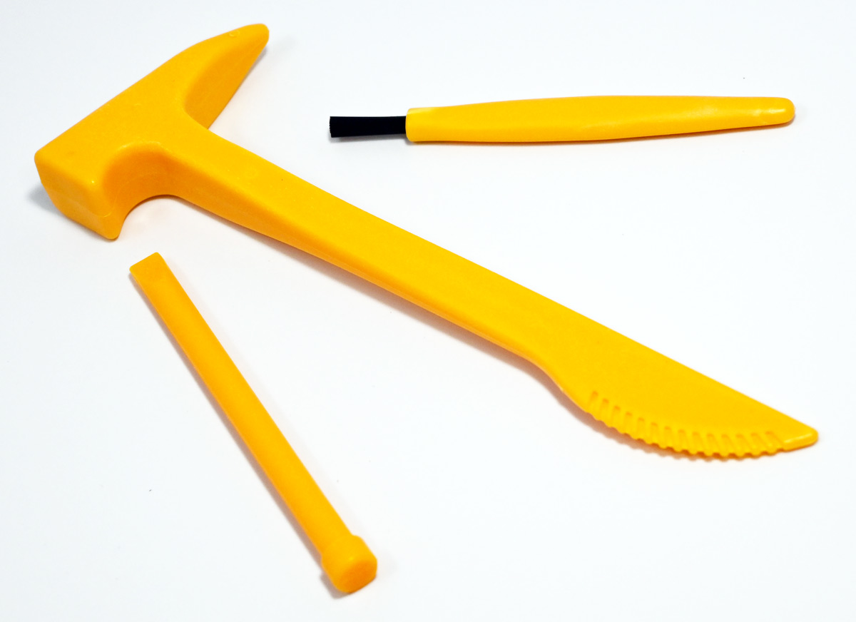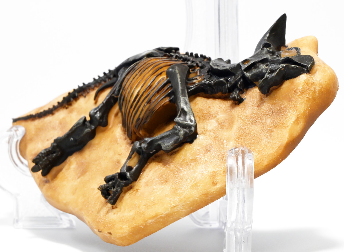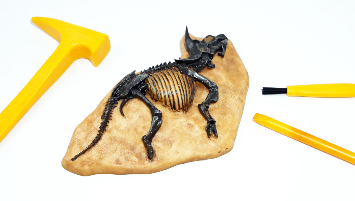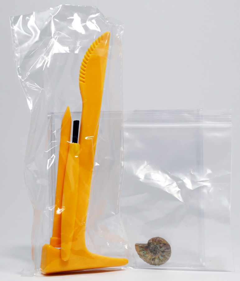 ■学研の科学 恐竜化石発掘キット: 世界とつながるほんもの体験キット ![]() 2025年10月23日発売 / 4730円(税込) 子供達が夢中になるほんものの科学体験を付録にした「学研の科学」シリーズより、 恐竜学者になりきれる「恐竜化石発掘キット」が遂に登場・・・! なんとモチーフはあの科博に展示されているトリケラトプスの実物産状化石 「レイモンド」と言うから本格的にも通なアイテムであるぞよ! ![]() 丁度この10月は新作ゲーム「Pokemon LEGENDS Z-A」の発売月。 楽天ブックスで買ったら「Z-A」の広告が入っていたぞよ!! ![]() 切り離すと栞になる仕様が楽しい広告だ。 この月はゲームもやらなきゃならんし化石も掘らなきゃならんしで忙しかったぞよよ〜!! ![]() 「レイモンド」をモチーフとしているだけあって、 国立科学博物館・名誉研究員の真鍋真先生が監修となっておられる。 巷にあふれる化石発掘キットと言えば胡乱ななんちゃって骨格玩具が出てくるテキトーなものばかりだが、 本商品はかなり本格的な珍しいアイテムと言えるだろう・・・! ![]() 燦然と輝く国立科学博物館 トリケラトプス化石「レイモンド」の文字・・・! ![]() 科博の地下にはトリケラトプスの復元骨格も展示されており、 ティラノと戦っているこっちに一見目が行きがちだが、 実は奥に横たわっているレイモンドの方が実物で貴重な展示なのだ! ![]() ちなみにパッケージの赤い装丁は全て箔押しの豪華な仕様! キラキラして格好良い!! これはちびっ子の目に留まる良いデザインですぞよ〜! ![]() パカっと開封! 冊子が二冊と付録箱が入っています。 ![]() トリケラトプスのCG絵が表紙の「学研の科学」本誌と、 付録まんが特別編「学研まんがひみつシリーズ『恐竜化石のひみつ』」が入っているぞよ。 ![]() 本誌の方はレイモンド発掘キットの説明書も兼ねているので、キットで遊ぶ前にこちらに目を通そう! まんがの方は後でじっくり読むとタメになるぞよ! ![]() 本誌はフルカラー58ページでレイモンドがどういう化石なのか解説しながら、 恐竜の二大分類や代表種など基本知識も紹介。 「ジュラシック・ワールド」の映画怪獣から恐竜に興味を持ったちびっ子が、 「恐竜」と言う生き物について一歩踏み込んだ知識を学ぶのに最適な入門本となっているぞよ! 真鍋真先生も実写で登場し我々を楽しませてくれる。 やはり本物の古生物学者ともなると、こうしてにこやかに表に出て来なくてはならんから大変なのだ! わたくしが面白いと思ったのは、駒場東邦中学校・高等学校地学部が特集されている点ぞよ! この地学部ではフィールドワークで実際に化石や鉱物の採集を行っており、 その活動が判りやすく紹介されているのだが・・・ おろかなにんげんども、大体恐竜を考古学と勘違いしがち! 恐竜は古生物学で、化石は石なので地質学を修めねばならんが、 普通そんなこと知らんのでちびっ子はどの進路を取ればよいのかさっぱりわからず道を誤るのである。 この本を読めば成程恐竜は地質学か!と学ぶ事が出来るので、 ひょっとしたら未来の恐竜博士の指標となる一冊になるかもしれないぞよね! ![]() 付録まんがはモノクロ72ページで化石や発掘に関しての知識が物語形式で面白おかしく解説されている。 これらの本ではイラストやCGビジュアルだけでなく、実物やレプリカ化石の写真が沢山掲載されているのも嬉しいポイントぞよ。 まんが巻末にはこの日本で見つかった恐竜化石もマップで網羅・紹介されており、 夢とロマンの高まる資料集ともなっている。 ![]() 続いてキットの中身を見ていこう! 本格的な発掘セットとして、オレンジのハンマー、たがね、ブラシが封入。 おまけでアンモナイトも入っているぞよ! ![]() これらのアイテムは化石レリーフを石膏岩盤から掘り出す時に使用する。 ま〜見ての通りの道具であるぞよ。 鋭利な部分は無いので使い終わった後は玩具にして遊んでも良いだろう! ![]() 付録のアンモナイトはなんとまさか! マダガスカル産の実物化石ぞよーっ!! 天然ものなので勿論同じ形は一つとしてない、全てが一品ものなのだ! 本誌ではアンモナイト専門家にしてポケモン化石博物館でもお馴染みの、 相場大佑先生も登場し街中で見つけるアンモナイト化石特集を解説しておられるぞよ。 ![]() アンモナイトは約4億年前の古生代デボン紀に登場し、 中生代白亜紀に大繁栄。 6600万年前に恐竜達と共に姿を消すまで太古の海で長く繁栄した頭足類で、 イカやタコと同じグループであるぞよ。 本キットに収録されている化石は白亜紀のものとなる。 化石と言うのは生物の痕跡が長い年月をかけて鉱物となって残ったものであるからして、 宝石のように磨いてしまうと本質が失われ価値が下がってしまうぞよ。 ところがこのアンモナイトは白亜紀の地層からわんさか出て来るのでまず最初から価値がない。 従ってピカピカに磨いたりカットしても勿体なくないと言う訳ぞよ! 本キットのアンモナイトは半分にカットして断面を磨いてある
