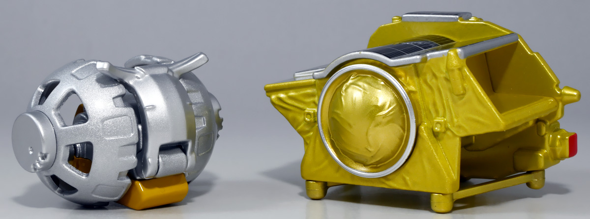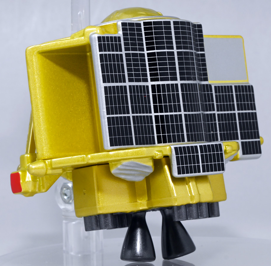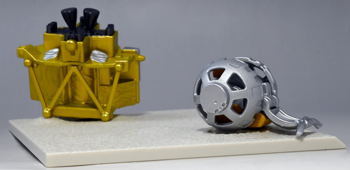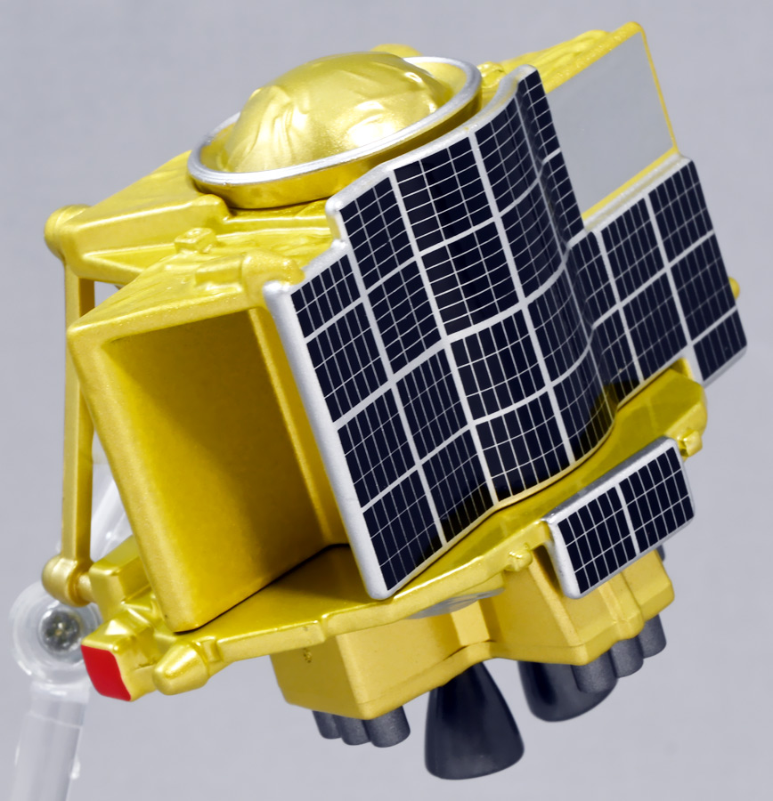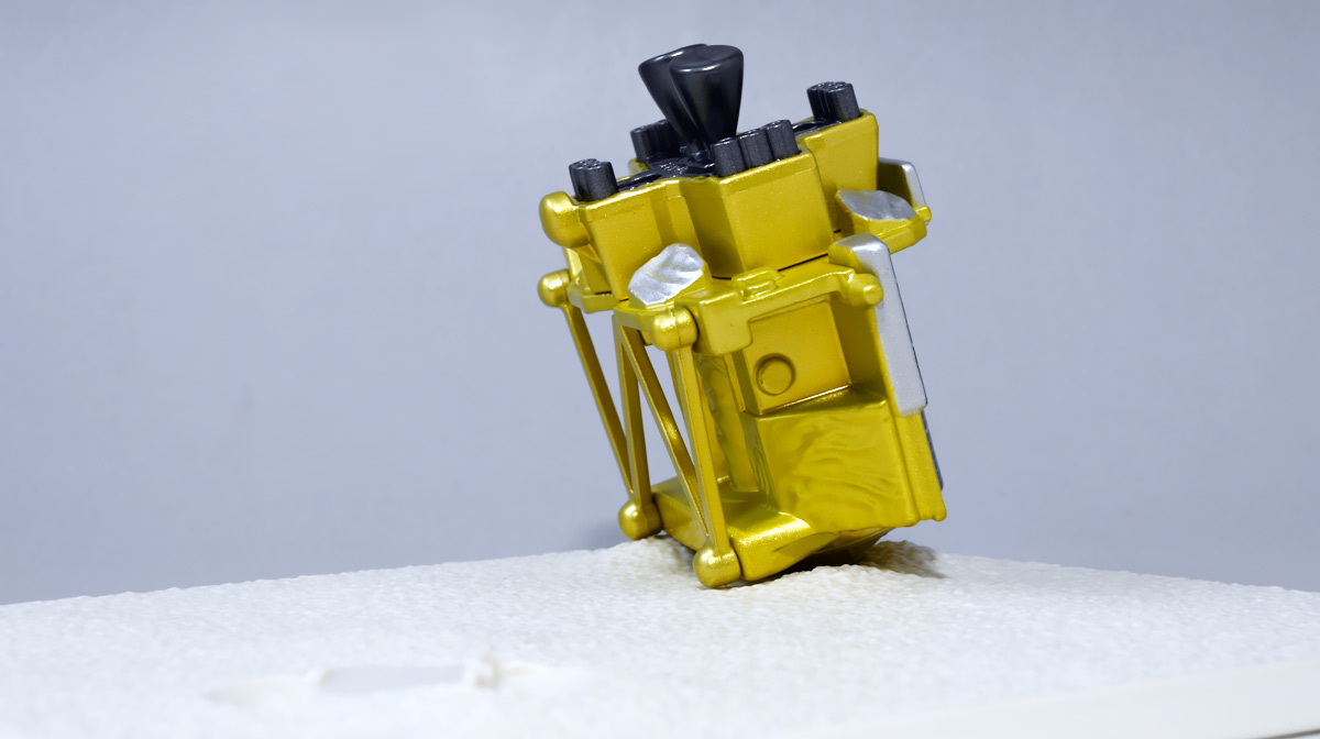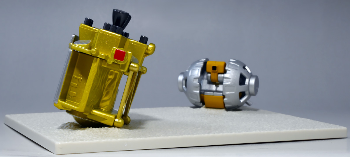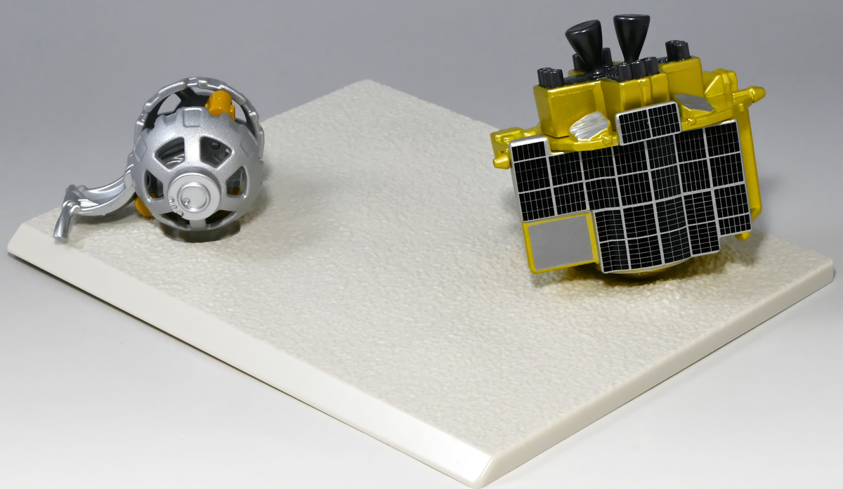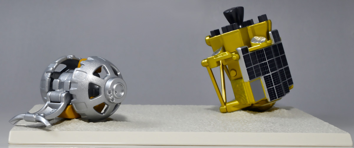 ■トミカプレミアム SORA-Q & SLIM ![]() こちらは2024年4月23日〜5月31日まで、タカラトミーモール他で受注予約された限定トミカプレミアム。 タカラトミーから実機玩具も発売されている「SORA-Q」と、 小型月着陸実証機「SLIM」をモチーフとしたここでしか手に入らないセットパッケージぞよ。 日本初の月面着陸実験から一周年となる、2025年1月20日(月)の着弾と言う事で、 すっかり忘れた頃にやってきた粋なトミカなのだ!! 価格は2750円(税込)ぞよ。 ![]() わたくしは宇宙ってアニメの宇宙しか興味ないぞよ。 従って宇宙関連のニュースもぼんやりとしか聞いていないのだが・・・ このトミカのモチーフとなった「SORA-Q」は、我らがタカラトミーがJAXA、ソニーグループ、同志社大学と共同開発しており、 実際に月面探査に加わった実機と同じモデルが玩具として販売されると言う事でわたくしも特別注目していたぞよ! 実機玩具のお値段は27500円と、戯れに買える値段じゃないので我慢しましたが・・・ それがトミカになると言われたら絶対欲しくなっちゃうぞよね!? って事で予約していたのだ! ![]() 限定物だけどパッケージもちゃんとした専用デザインの豪華箱となっている。 ![]() シールで封がされてあるのでブリスター窓になっているのかな・・・と思いきや、 ![]() パカっと開けると・・・な〜んだ絵しかないじゃん・・・と思いきや! こりゃ実物のSORA-Qが撮った月面写真の本物じゃないか! 粋な演出ぞよ〜! ![]() 中身はちゃんとブリスターで保護されています。 それでは早速見ていきましょう! ![]() まずはこちら! 可愛い変形型月面探査ロボの「SORA-Q」ぞよ! 前述の通り、タカラトミーが開発した変型メカぞよね! なんでも広報ではトランスフォーマーの技術が使われているとか宣伝される事が多かった。 パケの写真でも証明されたように、ちゃ〜んと月へ行って務めを果たしたおりこうさんぞよ! ![]() 「宇宙探査イノベーションハブ」とタカラトミーは2016年より 宇宙空間および地球上で活動できる安価な昆虫型ロボットの研究開発を行っていたが、 2019年にソニーグループが、2021年に同志社大学が加わり、最終的な成果として完成を見たのがこの「SORA-Q」であるぞよ! タカラトミーがこれまで開発してきた玩具で用いられているギミックを実際のロボットに落とし込んだ結果、 当初は昆虫型をベースとしていた機体は球体へと変更。 基本形態からの変形によって走行・ターンなどをごく小さなエネルギーで行えるようになり、 月面での活動も可能となったのだ! ![]() こうして完成した「SORA-Q」は球体モードで「SLIMミッション」への搭載が決定した。 これは月面低重力環境下における超小型ロボットの探査技術の実証実験であるぞよ。 着陸機SLIMから射出された球体SORA-Qは月面で展開モードに変形し、 斜面を転がって移動、搭載カメラで状況を撮影。 撮影画像を対になるもう一つの探査機「LEV-1」経由で地球に送信すると言うミッションが課せられていた。 トミカでは格納状態である完全な球体モードには変形できないが、 展開状態と走行形態などのギミックを簡易再現しているぞよ。 ![]() 月着陸実証機SLIMに搭載されたものは正式名称「LEV-2」 バネを伸縮させ月面移動し、地球へのデータ送信を目的とする「LEV-1」とそれぞれ役割分担して活動するぞよ。 タカラトミーが一般販売したLEV-2とほぼ同型機の市販モデルの商品名が「SORA-Q」となっている。 これは 宇宙を意味する「宙(そら)」と、宇宙に対する「Question(問い)」、「Quest(探求)」、 そして「球体」などを文字った愛称である。 また、シルエットが「Q」に似ている事もモチーフとなっているぞよ。 可愛いぞよね! 前述の通り、LEV-2=SORA-Qの開発に当たっては「ゾイド」や「トランスフォーマー」などのタカトミ玩具のノウハウが活かされていると言う。 しかし、タカトミが月面探査ロボの開発に関わる大元の切っ掛けとしては、 2007年にタカトミから発売された二足歩行ロボット「Omnibot 17μ i-SOBOT」の存在が大きかったとされているぞよ。 ![]() SORA-Qが形になるのは苦難の連続であったという。 形状を球体にした事で省エネ&小サイズ化には成功したものの、初期段階ではあんまり馬力が少なく、 ほんの小さな段差も乗り越える事が出来なかったのだ。 しかし、ある動物が突破口に繋がるヒントとなった! ・・・その動物とは・・・ なんとウミガメの赤ちゃん! ![]() 孵化したてのウミガメの赤ちゃんは、親が産卵の為に砂浜に掘った深い穴も器用に登ってゆく事が出来る。 その秘密は、左右交互に砂をかくヒレの動き! この動きをヒントに、SORA-Qは球体モードからボディを左右に分割し、 この割れたボディをタイヤとして、左右同時に回転させたり、交互に回転させたりする事で、 月面の砂をかいて力強くも器用に前進する事が出来るようになったのだ! ![]() SLIMから発進したSORA-Qは、月面に落ちてまずボディを左右に分割し、このようにスタビライザーを展開。 この尻尾は本体が転ばな