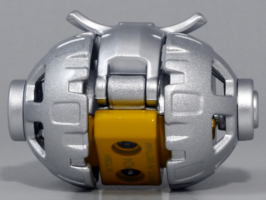 ■タカラトミーアーツ ホビーガチャ EX バック・トゥ・ザ・フューチャー ![]() タカトミアーツより、2024年11月発売の一回500円ガチャ! ラインナップ全てデロリアン・タイムマシンの特集弾に豪華「EX」バージョンが登場ぞよ!! しょっちゅうデロリアンのレビューしている気がするが・・・ 色々他にも摘んでるけど載せそびれている間に旬が過ぎ、 そのうちデロリアンの新作が出てしまうのでしょうがないのだ!! 他のミニカーレビューは専門家にお任せするぞよ・・・!! ![]() という事で今回から「EX」となったホビーガチャですが、 本シリーズは2021年7月に「ホビーガチャ バック・トゥ・ザ・フューチャー デロリアン【タイムマシン】」としてはじまり、 2022年5月に第二弾として「ホビーガチャ バック・トゥ・ザ・フューチャー デロリアン(タイムマシン) -SECOND EDITION-」が登場、 そして2024年11月の「EX」弾と言う事で、これで3弾めと言う長寿ガチャになりつつあるぞよ。 400円だった過去弾から値上がりの500円となった本弾では、 ボディが新規造形になり、各所のディテールアップが図られた豪華版となっている。 ラインナップは映画の1〜3を網羅する全3種だ! それでは早速中身を見ていこう!! ![]() まずはこちら「バック・トゥ・ザ・フューチャー」のカプセルぞよ! オトナの事情で「デロリアン」表記は用いられず「タイムマシン」となっているが、 モチーフがご存知映画「バック・トゥ・ザ・フューチャー(1985)」に登場する 「デロリアン・タイムマシン」である事は説明不要ぞよね! ドクことエメット・ブラウン博士が愛車のデロリアン・DMC-12を改造して作ったタイムマシンで、 次元転移装置やタイムサーキットを備え、タイムトラベルの動力用に小型原子炉まで装備した夢の超マシンであるぞよ! 本商品はこれを1/64スケールで再現している。 ![]() 本商品は特に映画一作目のラストで1985年へ帰還する為に用いられた最終装備を再現しており、 転移のエネルギーを落雷で充填する為に突貫で作られたフックが装着されているぞよ。 このフックは過去弾同様ランナーから切り離す必要があるので要ニッパーだ! ![]() さて、細かく仕様を見ていきたいが・・・ まずぱっと目に留まるのはDMC-12最大の特徴であるステンレスボディを再現したメタリック塗装ぞよね! 実車ではオーステナイト系ステンレス鋼からなるパネルが一切塗装されないむき出しの状態が一般仕様であり、 これはメンテナンスフリーを謳っていたがその実フレームの金属は錆びてゆくうえ、 様々な欠陥があり故障が付き物の手のかかるヤツであったと言う事だが・・・ ミニカーにおいてはこの剥き出しのシルバーを彩色で再現したり、ダイキャストの質感で再現したり、様々なアプローチが見られる。 本商品ではご覧の通りキラキラメタリック塗装で再現しているのだが、 この色味が過去弾より落ち着いた高級感のある彩色で実に見栄えがするぞよ! 更に全体のメカディテールも過去弾からアップデート。 彩色箇所が増え、より劇中イメージに近づいた作りはまさに「EX」仕様に相応しい仕上がりだ!! ![]() 「デロリアン」名義ではないがフロントにはきちんと「DMC」ロゴがプリントされている。 8月に出たばかりの「トミカプレミアムunlimited(1320円)」では再現されていなかった箇所なので、 てっきり大人の事情が絡むのかと思いきや・・・この500円ガチャは再現されてるじゃねーか!! こりゃあ短期販売のガチャと通年販売のトミカではライセンス料が桁違いに変わってくるって事かもしれんぞよね・・・ よくわかりませんが!! そして本商品の目玉ポイントであるボディの新規造形はフロントに特に活きており、 ヘッドライトが彩色でなくクリアパーツになった喜び・・・! ほんの小さなアップデート箇所だが、これが実に実在感が増して雰囲気出てるぞよよ〜! そしてそして! 本商品にはなんと・・・新規造形で1/64の「マーティ・マクフライ」フィギュアがおまけについてくる! こちらもきちんと彩色済みの豪華なものだ!! 100円値上げでこんな豪華にしちゃって良いぞよか〜っ!? ![]() テールランプのグラデーションもきちんと再現されているぞよ。 ナンバープレートはシールを貼り付ける仕様だが、プラ製のしっかりしたシールなのが嬉しい。 反面ごく細かいシールなのでカットがずれちゃってるのと、 つるつる滑って密着感が薄いのはご愛敬。 位置決め後は綿棒でよくこしこしして圧着させましょう! ![]() トップ。 後述するが、ボディはメカディテールが見直されており過去弾より情報量が増している。 ![]() ボトム。 シャーシとホイールは過去弾から共通パーツぞよ。 従って過去弾のスタンドなども使用可能だが、これも後述ぞ。 ![]() まだまだこれだけじゃないぞ、おまけパーツ! 過去弾にも付属した炎パーツ×4が本弾にも付属! 後方に並べる事であらゆるミニカーをタイムスリップさせる事が可能な面白パーツだ! ![]() そしてそして・・・な、な、なんと・・・! 新ギミ