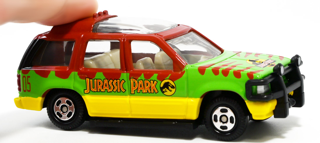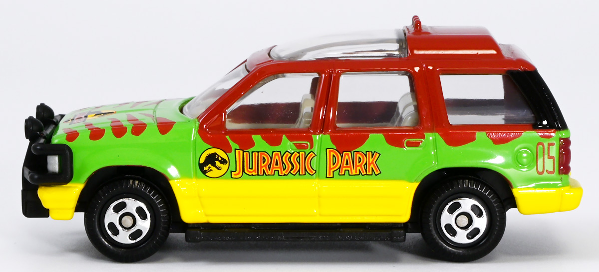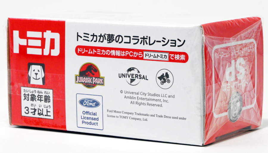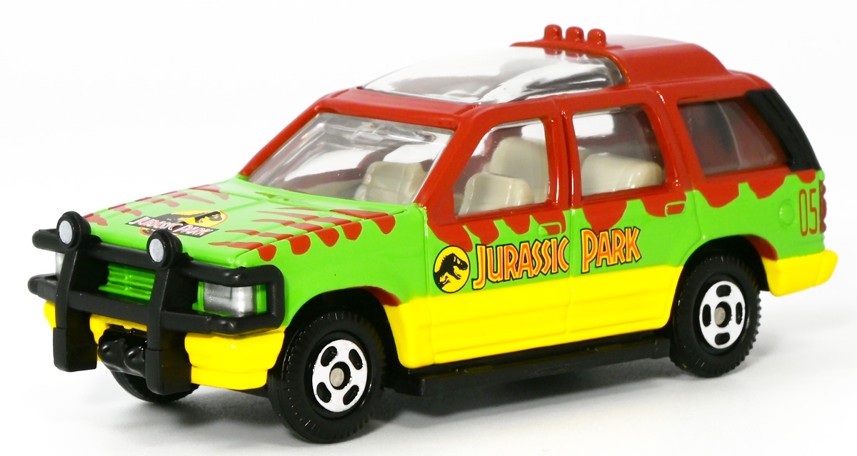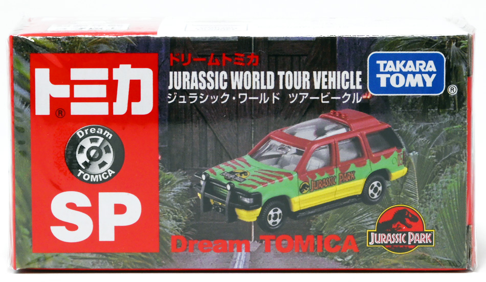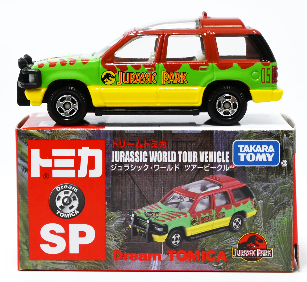 ■ドリームトミカ SP ジュラシック・ワールド ツアービークル ![]() 2025年7月26日発売 / 880円(税込) ジュラパツアービークル、トミカに復活! パッケージには映画で象徴的なジュラシックパークのゲートが映っているぞよ。 ![]() こちらはもともと2018年7月21日に「ドリームトミカ No.141 ジュラシック・ワールド ツアービークル」として 770円(税込)で発売されたものの復刻バージョン。 今回はナンバー無しの「SP」ラインナップとなっているぞよ。 ![]() 名義は「ジュラシック・ワールド」だがちゃんと「ジュラシック・パーク」のロゴも入っている。 ![]() くちにいれない! ![]() それではパカっと開封ぞよ! ![]() ドリームトミカで復活の「ジュラシック・パーク(1993)」ツアービークル! 1992年型フォードエクスプローラーXLTを元に改造した、 レールの上を自動運転で走るジュラシックパークのサファリツアーカーぞよ! ![]() こちらの5号車は劇中でグラント博士ら恐竜博士チームが乗り込んだ後続車。 詳しい事は本ページ中のマッチボックス版のレビューで紹介したので割愛ぞよ。 ![]() このトミカはもともと「ジュラシック・パーク」25周年&「ジュラシックワールド2」公開を記念して、 2018年に発売されたものの復刻版。 「ジュラワ2」こと映画「ジュラシック・ワールド 炎の王国(2018)」では再びイスラ・ヌブラル島が登場し、 そこで破壊されたツアービークルも再登場している。 しかし、劇中でオーウェンが発見するのは初代「ジュラパ」でT-レックスに破壊された4号車の残骸であり、 この5号車は行方不明のまま、島は火山噴火に見舞われ過去の遺物も全て消滅してしまったぞよ。 ![]() と言う事で映画でメイン級に活躍(?)するのは基本的に4号車なんですね! なんでトミカは5号車を選んだのだろう? 謎な選出だが恐竜博士達が乗り込む車両だからかもしれない。 ![]() 映画にクレジットは無いが、「ジュラシック・パーク(1993)」に登場したツアービークルは、 テレビシリーズ「バットマン」のバットモービルなど数々の格好良いカスタムカーを手掛けた事でも知られる ハリウッド・カスタムカーのデザイナー兼ビルダーとして伝説的な人物。 ジョージ・バリスの手によるものであるぞよ。 ![]() トップ。 ガラスルーフから内装が覗けます。 ちゃんとモニターなんかも造形されているぞよ。 ![]() シャーシはシンプル造形だがざらざら加工でちょっと高級感がある仕様だ。 ![]() 象徴的な「ジュラシック・パーク」ロゴもばっちり再現。 彩色も全方位抜かりなしで理想的な仕上がり。 こういうのが欲しかったんだぞよ〜っ! ![]() ツアービークルのトミカは他に、USJ限定トミカとして「トミカ ジュラシック・パークカー」と言うものも出ている。 お値段1500円と言う遊園地価格・・・! そしてデザインは劇中のツアービークルと異なり、 ガラスフールでなく様々な装備も違う劇中未登場の3号車仕様。 これはユニバーサル・スタジオ・ジャパンに展示されているモックアップレプリカを忠実に再現した仕様であるぞよ。 と言う事で謎に生えてきた3号車は立体化しているのに、肝心の4号車はやはりトミカになっていないのであった。 ![]() きゅいきゅい! サスペンションギミックあり!! ![]() 先に紹介済みのマッチボックス版と並べて〜。 左が国内では5カーパック限定だった「泥はね4号車(ランド&エアーチーム(2022)」、 真ん中が「フォードエクスプローラー(#5)(2025年6月)」であるぞよ。 ![]() 並べると再現度の差は一目瞭然・・・ッ! マッチボックスは屋根の赤もボディの黄色もライトの白も何もかも足りていない・・・! が、トミカはやはりトミカナイズされており、サイドミラーが造形されておらず、 ホイールもいつものシルバーメッキとなっている。 マッチボックスはサーチライトが造形されていたり、ホイールも黄色なのでそこは勝ってるぞよね。 ![]() 大きく再現度の高い 「JADA TOYS 1/32 1993 フォード エクスプローラー "ジュラシック・パーク"」と並べて〜。 こうして見るとツアービークルの魅力がぎゅっと詰まったトミカに仕上がっているのがお判りいただけるだろう! ぜひ4号車も出して欲しいぞよな〜。 ![]() タカラトミーが出している言わばトミカ動物版、 「アニア」シリーズにはジュラシック恐竜達も沢山ラインナップされているぞよ! 組み合わせて劇中のわくわくを再現しよう!! ![]() T-レックス襲来!! 阿鼻叫喚の一夜が始まった!! ![]() このサイズ感、明らかにアニアはトミカと組み合わせて遊ぶ事が想定されていそうだが、 不思議な事にジュラシック関連のトミカって全然ラインナップされていないんですよ〜。 アニアとのセットパッケージとか出してくれてもいいのにな〜。 ![]() ひっくり返っちゃった4号車を横目に無傷の5号車。 この後5号車はフェードアウトして二度と映画に登場する事は無かったぞよよよよ・・・。 ![]() アニア「ジュラシック・パーク」と組み合わせて遊ぼう! ツアービークルがSPナンバーで再登場ぞよ! こちらはナンバー