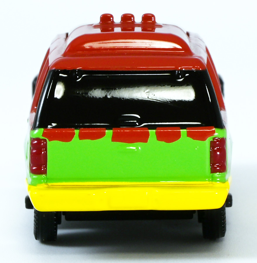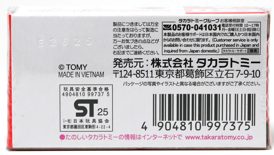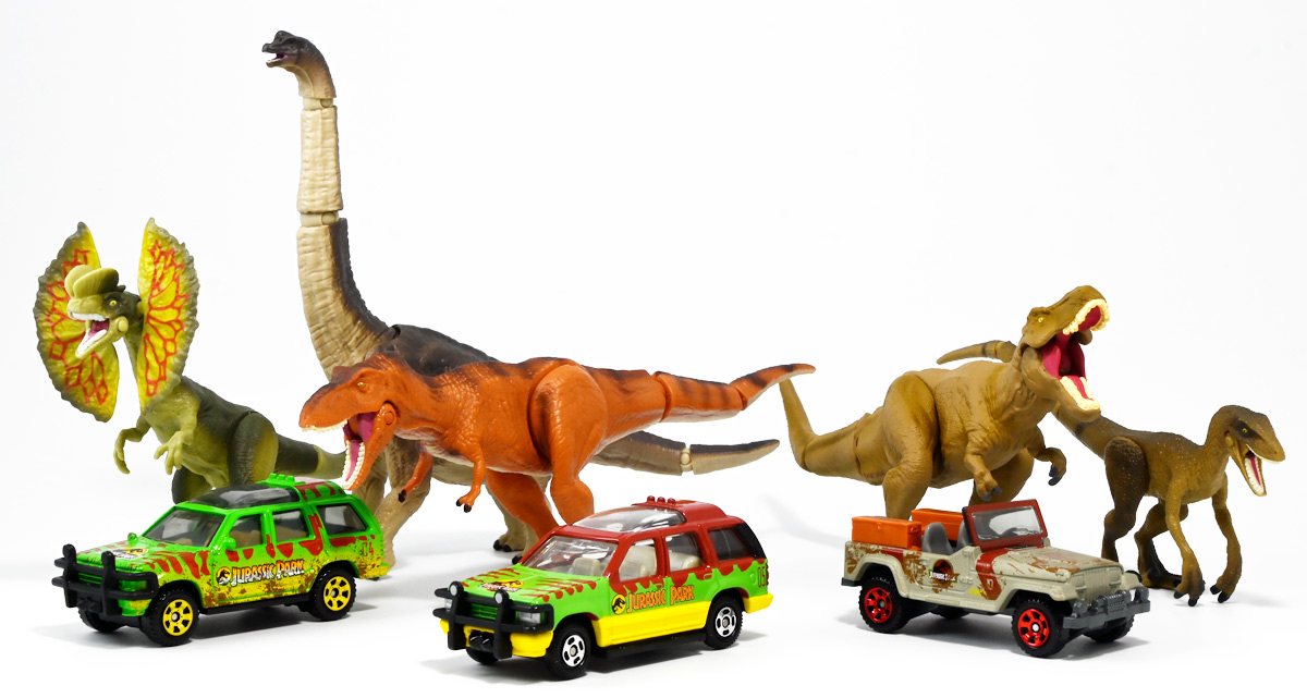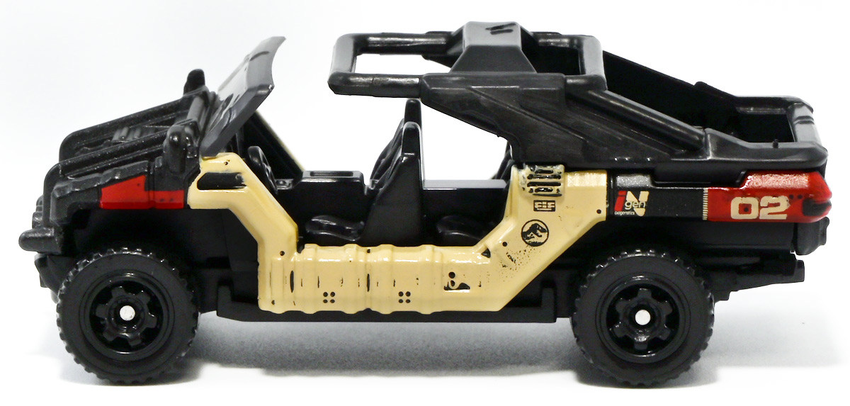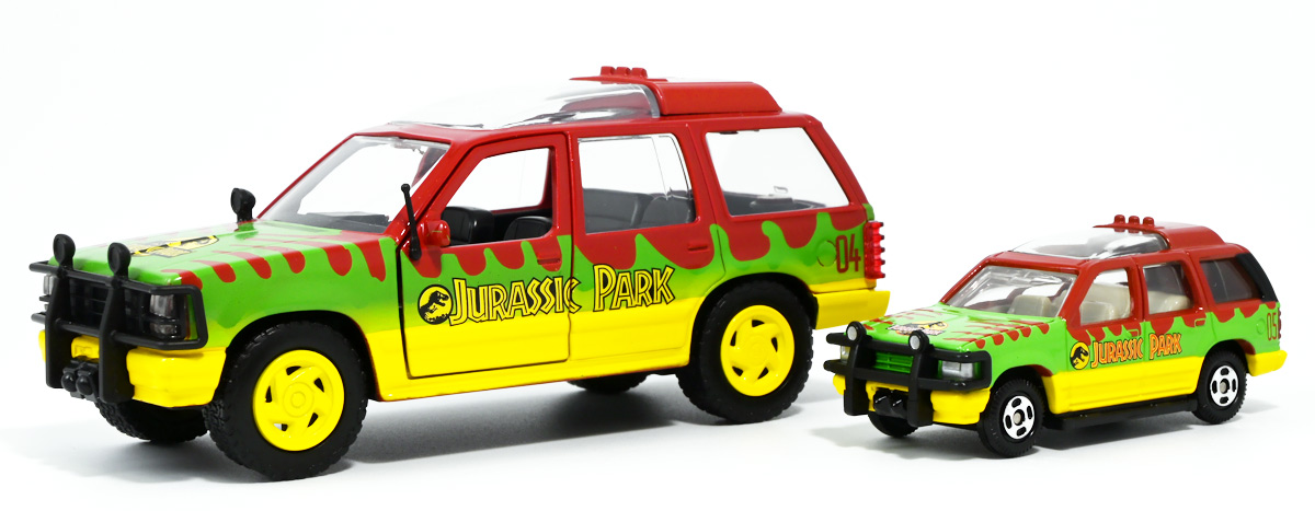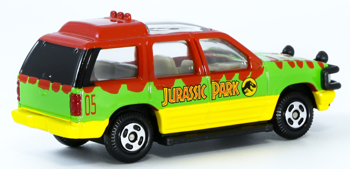 ■ドリームトミカ SP ジュラシック・ワールド ツアービークル ![]() 2025年7月26日発売 / 880円(税込) ジュラパツアービークル、トミカに復活! パッケージには映画で象徴的なジュラシックパークのゲートが映っているぞよ。 ![]() こちらはもともと2018年7月21日に「ドリームトミカ No.141 ジュラシック・ワールド ツアービークル」として 770円(税込)で発売されたものの復刻バージョン。 今回はナンバー無しの「SP」ラインナップとなっているぞよ。 ![]() 名義は「ジュラシック・ワールド」だがちゃんと「ジュラシック・パーク」のロゴも入っている。 ![]() くちにいれない! ![]() それではパカっと開封ぞよ! ![]() ドリームトミカで復活の「ジュラシック・パーク(1993)」ツアービークル! 1992年型フォードエクスプローラーXLTを元に改造した、 レールの上を自動運転で走るジュラシックパークのサファリツアーカーぞよ! ![]() こちらの5号車は劇中でグラント博士ら恐竜博士チームが乗り込んだ後続車。 詳しい事は本ページ中のマッチボックス版のレビューで紹介したので割愛ぞよ。 ![]() このトミカはもともと「ジュラシック・パーク」25周年&「ジュラシックワールド2」公開を記念して、 2018年に発売されたものの復刻版。 「ジュラワ2」こと映画「ジュラシック・ワールド 炎の王国(2018)」では再びイスラ・ヌブラル島が登場し、 そこで破壊されたツアービークルも再登場している。 しかし、劇中でオーウェンが発見するのは初代「ジュラパ」でT-レックスに破壊された4号車の残骸であり、 この5号車は行方不明のまま、島は火山噴火に見舞われ過去の遺物も全て消滅してしまったぞよ。 ![]() と言う事で映画でメイン級に活躍(?)するのは基本的に4号車なんですね! なんでトミカは5号車を選んだのだろう? 謎な選出だが恐竜博士達が乗り込む車両だからかもしれない。 ![]() 映画にクレジットは無いが、「ジュラシック・パーク(1993)」に登場したツアービークルは、 テレビシリーズ「バットマン」のバットモービルなど数々の格好良いカスタムカーを手掛けた事でも知られる ハリウッド・カスタムカーのデザイナー兼ビルダーとして伝説的な人物。 ジョージ・バリスの手によるものであるぞよ。 ![]() トップ。 ガラスルーフから内装が覗けます。 ちゃんとモニターなんかも造形されているぞよ。 ![]() シャーシはシンプル造形だがざらざら加工でちょっと高級感がある仕様だ。 ![]() 象徴的な「ジュラシック・パーク」ロゴもばっちり再現。 彩色も全方位抜かりなしで理想的な仕上がり。 こういうのが欲しかったんだぞよ〜っ! ![]() ツアービークルのトミカは他に、USJ限定トミカとして「トミカ ジュラシック・パークカー」と言うものも出ている。 お値段1500円と言う遊園地価格・・・! そしてデザインは劇中のツアービークルと異なり、 ガラスフールでなく様々な装備も違う劇中未登場の3号車仕様。 これはユニバーサル・スタジオ・ジャパンに展示されているモックアップレプリカを忠実に再現した仕様であるぞよ。 と言う事で謎に生えてきた3号車は立体化しているのに、肝心の4号車はやはりトミカになっていないのであった。 ![]() きゅいきゅい! サスペンションギミックあり!! ![]() 先に紹介済みのマッチボックス版と並べて〜。 左が国内では5カーパック限定だった「泥はね4号車(ランド&エアーチーム(2022)」、 真ん中が「フォードエクスプローラー(#5)(2025年6月)」であるぞよ。 ![]() 並べると再現度の差は一目瞭然・・・ッ! マッチボックスは屋根の赤もボディの黄色もライトの白も何もかも足りていない・・・! が、トミカはやはりトミカナイズされており、サイドミラーが造形されておらず、 ホイールもいつものシルバーメッキとなっている。 マッチボックスはサーチライトが造形されていたり、ホイールも黄色なのでそこは勝ってるぞよね。 ![]() 大きく再現度の高い 「JADA TOYS 1/32 1993 フォード エクスプローラー "ジュラシック・パーク"」と並べて〜。 こうして見るとツアービークルの魅力がぎゅっと詰まったトミカに仕上がっているのがお判りいただけるだろう! ぜひ4号車も出して欲しいぞよな〜。 ![]() タカラトミーが出している言わばトミカ動物版、 「アニア」シリーズにはジュラシック恐竜達も沢山ラインナップされているぞよ! 組み合わせて劇中のわくわくを再現しよう!! ![]() T-レックス襲来!! 阿鼻叫喚の一夜が始まった!! ![]() このサイズ感、明らかにアニアはトミカと組み合わせて遊ぶ事が想定されていそうだが、 不思議な事にジュラシック関連のトミカって全然ラインナップされていないんですよ〜。 アニアとのセットパッケージとか出してくれてもいいのにな〜。 ![]() ひっくり返っちゃった4号車を横目に無傷の5号車。 この後5号車はフェードアウトして二度と映画に登場する事は無かったぞよよよよ・・・。 ![]() アニア「ジュラシック・パーク」と組み合わせて遊ぼう! ツアービークルがSPナンバーで再登場ぞよ! こちらはナンバー