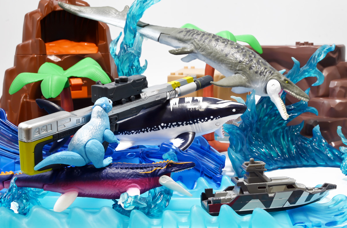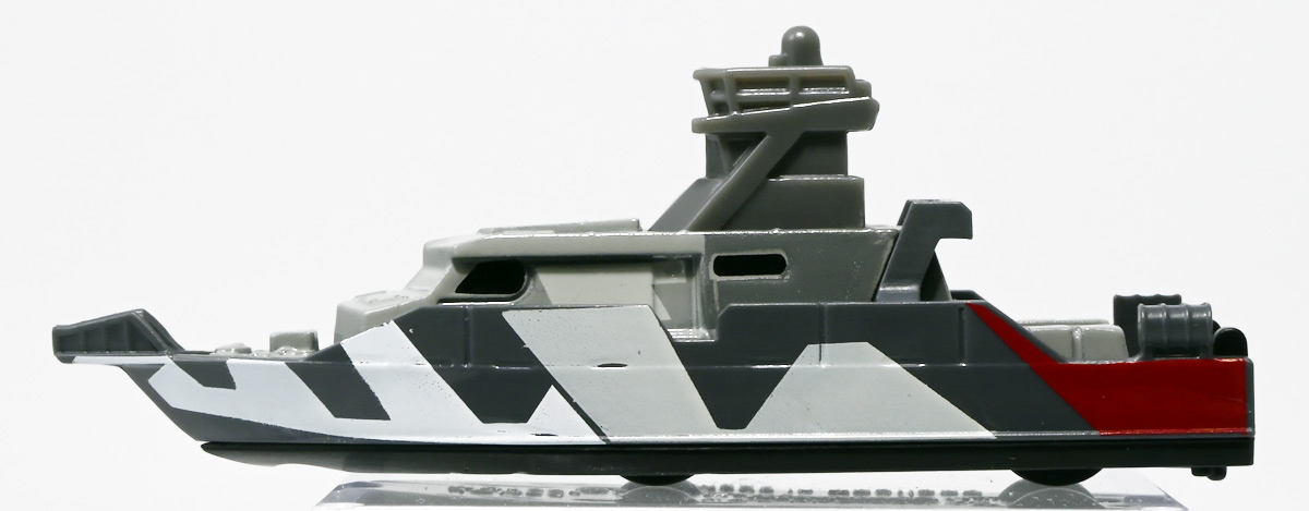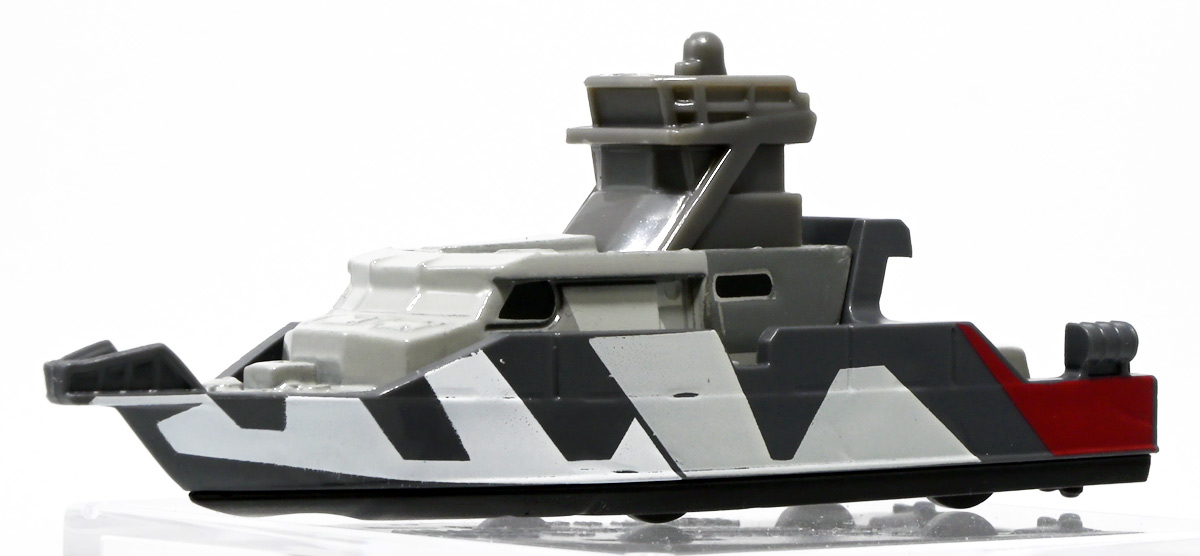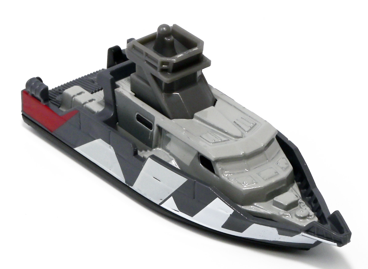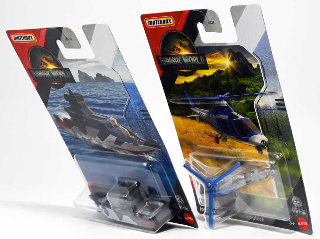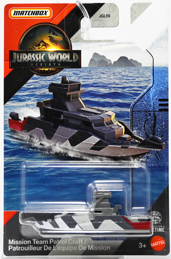 ■マッチボックス(Matchbox) ジュラシック・ワールド ベーシックカー ミッションチーム パトロールクラフト ![]() 2025年7月発売 / 550円(税込) 満を持して公開となった最新作「ジュラシック・ワールド/復活の大地」のマッチボックスミニカー ベーシックアソート第二弾! 映画で最も活躍するビークル・エセックス号のミニカーぞよ! ![]() こちらは7月発売の第二弾アソート「986B-JGL59」に封入されているもの。 「ミッションチーム パトロールクラフト」と「インジェン社 ヘリコプター」が新金型で登場! って事でちょうど新規造形だけ売り場に残っていたのでこれ幸いと回収ぞよ! 24台アソートの内約は 「ミッションチーム パトロールクラフト」×4、「メルセデスベンツ G 63 AMG 6x6」×2、「ジープ ラングラー(#18)」×2、 「フォードエクスプローラー」×2、「97 メルセデスベンツ ウニモグU1300」×2、「ハードノーズ」×4、 「97 メルセデスベンツ ML 320」×2、「インジェン社 ヘリコプター」×4、「オフロード レスキュー リグ」×2 となっており、船とヘリは箱に4つずつ入っているぞよ。 ![]() 台紙裏は褐色で雰囲気出ているぞよ! 日本販売向けにはシールで対応しています。 ![]() マッチボックスで登場の「ミッションチーム パトロールクラフト」! 劇中でゾーラが知己の縁からミッションチームにスカウトした ダンカン・キンケイドの駆る海賊船・エセックス号をモチーフとしたミニカーぞよね! ミッションチームはこの船でサン・ユベール島へと向かい、 最初のターゲットにモササウルスを選び、激闘と相成ったのだ!! ![]() 元となった船体は日本の横浜ヨットによって1980年代に造船された高速巡視船。 露天船橋と見張り台が再設計され、後方の手すりや扉などが増設。 迷彩仕様にペイントされており、後方の赤の差し色はジュラシックシリーズを象徴するカラーとなっているぞよ! ![]() 劇中でモササウルスと激闘を演じるシーンは精巧な原寸大セットの上で撮影されているぞよ。 水中可動式装置は船を左右それぞれ45度傾ける事を可能とし、迫力のアクションを実現している。 尤も安全上の理由から水は後からデジタル加工されたようぞよね! ![]() 「エセックス号」とは1820年に南太平洋を航行中、 マッコウクジラの襲撃で沈没したアメリカの捕鯨船の名であるぞよ。 哀れなる乗組員は難破船から回収した物資を残りの捕鯨船に詰め込み、一か月の航海の後無人島に上陸。 島に留まる事を選択した3人を残し、17人は再び出発したが、脱水症状や飢餓によって最終的には人肉食にまで頼り、 沈没から三か月後に救助された時、生存者は僅か5人となっていた・・・(ちなみに島に残った3人は救助されたぞよ) この悲惨な事件は国際的な注目を集め、ハーマン・メルヴィルが「白鯨」を執筆する切っ掛けともなったぞよ。 今回のエセックス号VSモササウルスは「白鯨」をモチーフにしたバトルと言う訳ぞよね! ![]() エセックス号はマッチボックスから本商品と、 もう一つ大きな玩具が「モササウルスを運べ!水陸両用レスキューシップ」として登場している。 マッチボックスのジュラシックシリーズビークルはハチャメチャ改造によって 「恐竜に勝つ」事が出来るようになっており、 「水陸両用レスキューシップ」もモササウルスフィギュアを掴めるクレーンハンドやミサイル発射機能が増設。 劇中とはやや異なる装備となっている。 ![]() わたくしは映画を見た後エセックス号の玩具絶対欲しい! と思ってトイザらスへ向かうも売り切れ・・・街を探し回る羽目になってしまったぞよ〜。 なんとか船とヘリは発見できたが車系はほぼ刈られていたのだ。 ![]() ボトム。 本当は船体下部にも構造がある筈だがミニカーはウォーターラインでカット。 海に浮かんだ状態が再現されている。 タイヤがついているので転がし走行も可能だ。 ![]() 劇中最も活躍すると言って過言でないビークル! モササウルス&スピノサウルス軍団との戦いで座礁・大破してしまったが、 次回は対恐竜戦艦スーパーエセックス号として復活して欲しいぞよよ〜!! ![]() 劇中デザインと比べるとあちこちミニカー仕様にデフォルメされているぞよ。 特に後方の造形は大きく異なり、赤いフレームがオミットされている。 ![]() 秘密作戦の為にチャーターした海賊船・エセックス号! よ〜し、みんな、気を引き締めてゆくぞよ! いざ、サン・ユベール島へ!! ![]() 早速ターゲットのモササウルスと接敵ぞよ!! 船体が傾ぐ程の衝撃っ! こ、こいつ・・・デカすぎるぞよーっ!! 今作登場の古生物達は「アニア」で網羅されているので映画の感想や詳しい紹介はそちらのレビューも参照のことぞ! ![]() モーサ!メガーロ!力を貸してくれっ! いくぞ、注射弾発射ぞよーっ!! ![]() やったー! 無事にDNAサンプルを回収したぞよ!! エセックス号、緊急退避ぞよーっ!! ![]() ・・・と喜んだのも束の間! なんとモササウルスはスピノサウルスと共生関係を結んでいた!! 危うし、エセックス号!! ![]() 食べられちゃうぞよーっ!