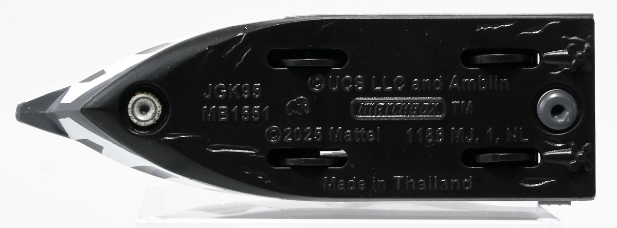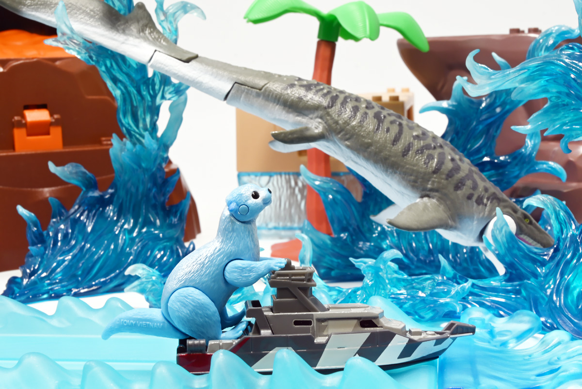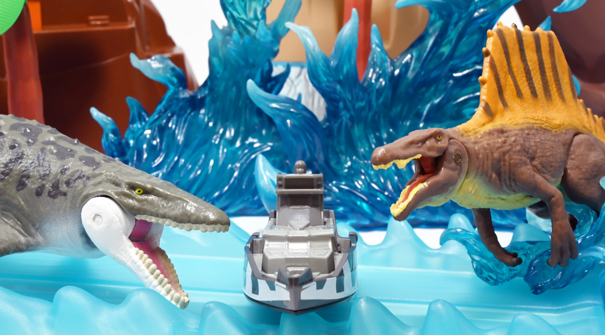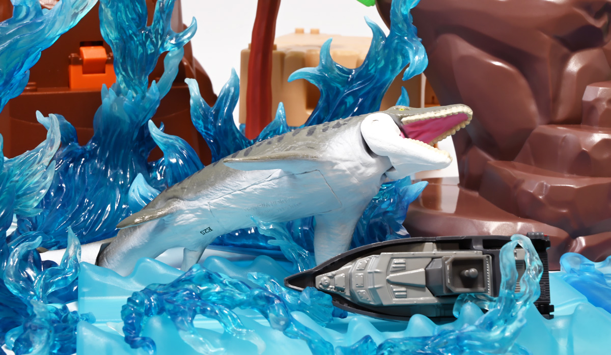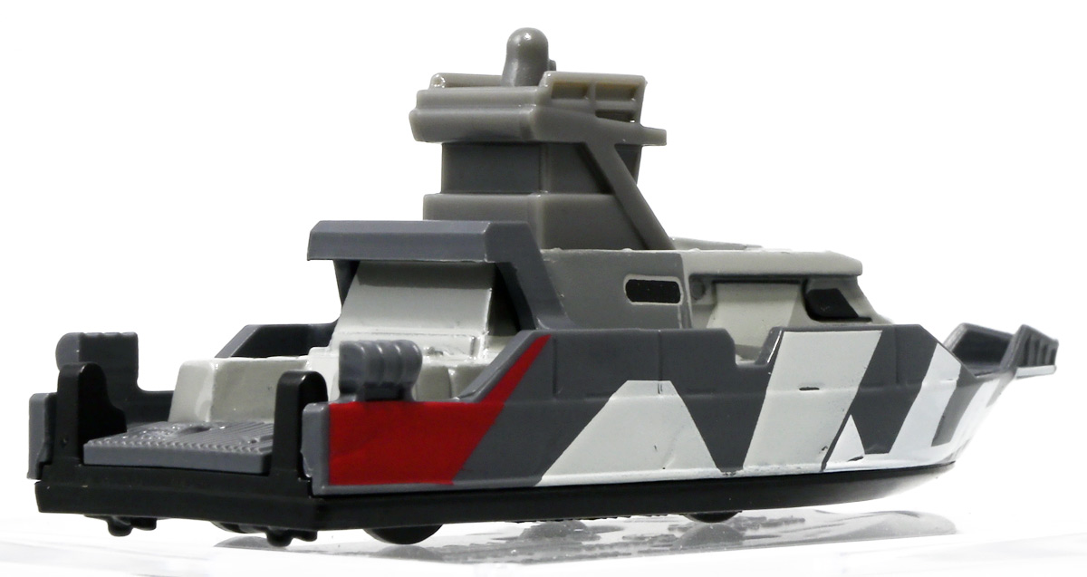 ■マッチボックス(Matchbox) ジュラシック・ワールド ベーシックカー ミッションチーム パトロールクラフト ![]() 2025年7月発売 / 550円(税込) 満を持して公開となった最新作「ジュラシック・ワールド/復活の大地」のマッチボックスミニカー ベーシックアソート第二弾! 映画で最も活躍するビークル・エセックス号のミニカーぞよ! ![]() こちらは7月発売の第二弾アソート「986B-JGL59」に封入されているもの。 「ミッションチーム パトロールクラフト」と「インジェン社 ヘリコプター」が新金型で登場! って事でちょうど新規造形だけ売り場に残っていたのでこれ幸いと回収ぞよ! 24台アソートの内約は 「ミッションチーム パトロールクラフト」×4、「メルセデスベンツ G 63 AMG 6x6」×2、「ジープ ラングラー(#18)」×2、 「フォードエクスプローラー」×2、「97 メルセデスベンツ ウニモグU1300」×2、「ハードノーズ」×4、 「97 メルセデスベンツ ML 320」×2、「インジェン社 ヘリコプター」×4、「オフロード レスキュー リグ」×2 となっており、船とヘリは箱に4つずつ入っているぞよ。 ![]() 台紙裏は褐色で雰囲気出ているぞよ! 日本販売向けにはシールで対応しています。 ![]() マッチボックスで登場の「ミッションチーム パトロールクラフト」! 劇中でゾーラが知己の縁からミッションチームにスカウトした ダンカン・キンケイドの駆る海賊船・エセックス号をモチーフとしたミニカーぞよね! ミッションチームはこの船でサン・ユベール島へと向かい、 最初のターゲットにモササウルスを選び、激闘と相成ったのだ!! ![]() 元となった船体は日本の横浜ヨットによって1980年代に造船された高速巡視船。 露天船橋と見張り台が再設計され、後方の手すりや扉などが増設。 迷彩仕様にペイントされており、後方の赤の差し色はジュラシックシリーズを象徴するカラーとなっているぞよ! ![]() 劇中でモササウルスと激闘を演じるシーンは精巧な原寸大セットの上で撮影されているぞよ。 水中可動式装置は船を左右それぞれ45度傾ける事を可能とし、迫力のアクションを実現している。 尤も安全上の理由から水は後からデジタル加工されたようぞよね! ![]() 「エセックス号」とは1820年に南太平洋を航行中、 マッコウクジラの襲撃で沈没したアメリカの捕鯨船の名であるぞよ。 哀れなる乗組員は難破船から回収した物資を残りの捕鯨船に詰め込み、一か月の航海の後無人島に上陸。 島に留まる事を選択した3人を残し、17人は再び出発したが、脱水症状や飢餓によって最終的には人肉食にまで頼り、 沈没から三か月後に救助された時、生存者は僅か5人となっていた・・・(ちなみに島に残った3人は救助されたぞよ) この悲惨な事件は国際的な注目を集め、ハーマン・メルヴィルが「白鯨」を執筆する切っ掛けともなったぞよ。 今回のエセックス号VSモササウルスは「白鯨」をモチーフにしたバトルと言う訳ぞよね! ![]() エセックス号はマッチボックスから本商品と、 もう一つ大きな玩具が「モササウルスを運べ!水陸両用レスキューシップ」として登場している。 マッチボックスのジュラシックシリーズビークルはハチャメチャ改造によって 「恐竜に勝つ」事が出来るようになっており、 「水陸両用レスキューシップ」もモササウルスフィギュアを掴めるクレーンハンドやミサイル発射機能が増設。 劇中とはやや異なる装備となっている。 ![]() わたくしは映画を見た後エセックス号の玩具絶対欲しい! と思ってトイザらスへ向かうも売り切れ・・・街を探し回る羽目になってしまったぞよ〜。 なんとか船とヘリは発見できたが車系はほぼ刈られていたのだ。 ![]() ボトム。 本当は船体下部にも構造がある筈だがミニカーはウォーターラインでカット。 海に浮かんだ状態が再現されている。 タイヤがついているので転がし走行も可能だ。 ![]() 劇中最も活躍すると言って過言でないビークル! モササウルス&スピノサウルス軍団との戦いで座礁・大破してしまったが、 次回は対恐竜戦艦スーパーエセックス号として復活して欲しいぞよよ〜!! ![]() 劇中デザインと比べるとあちこちミニカー仕様にデフォルメされているぞよ。 特に後方の造形は大きく異なり、赤いフレームがオミットされている。 ![]() 秘密作戦の為にチャーターした海賊船・エセックス号! よ〜し、みんな、気を引き締めてゆくぞよ! いざ、サン・ユベール島へ!! ![]() 早速ターゲットのモササウルスと接敵ぞよ!! 船体が傾ぐ程の衝撃っ! こ、こいつ・・・デカすぎるぞよーっ!! 今作登場の古生物達は「アニア」で網羅されているので映画の感想や詳しい紹介はそちらのレビューも参照のことぞ! ![]() モーサ!メガーロ!力を貸してくれっ! いくぞ、注射弾発射ぞよーっ!! ![]() やったー! 無事にDNAサンプルを回収したぞよ!! エセックス号、緊急退避ぞよーっ!! ![]() ・・・と喜んだのも束の間! なんとモササウルスはスピノサウルスと共生関係を結んでいた!! 危うし、エセックス号!! ![]() 食べられちゃうぞよーっ!
