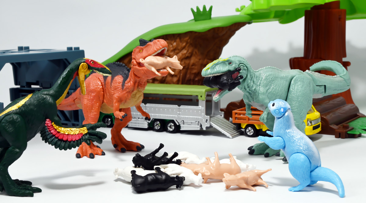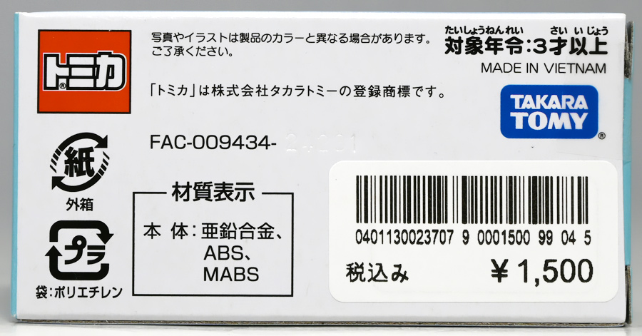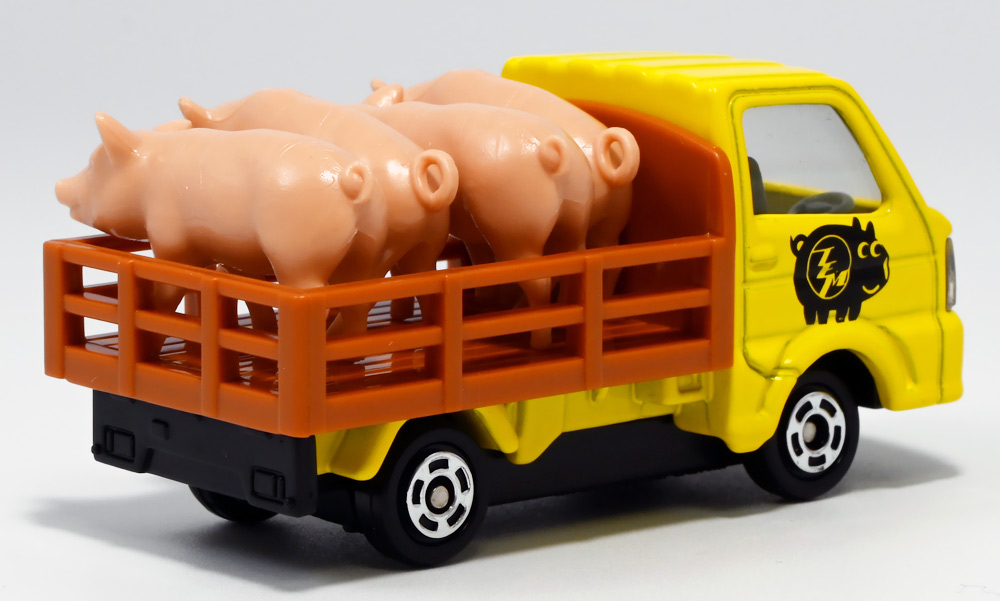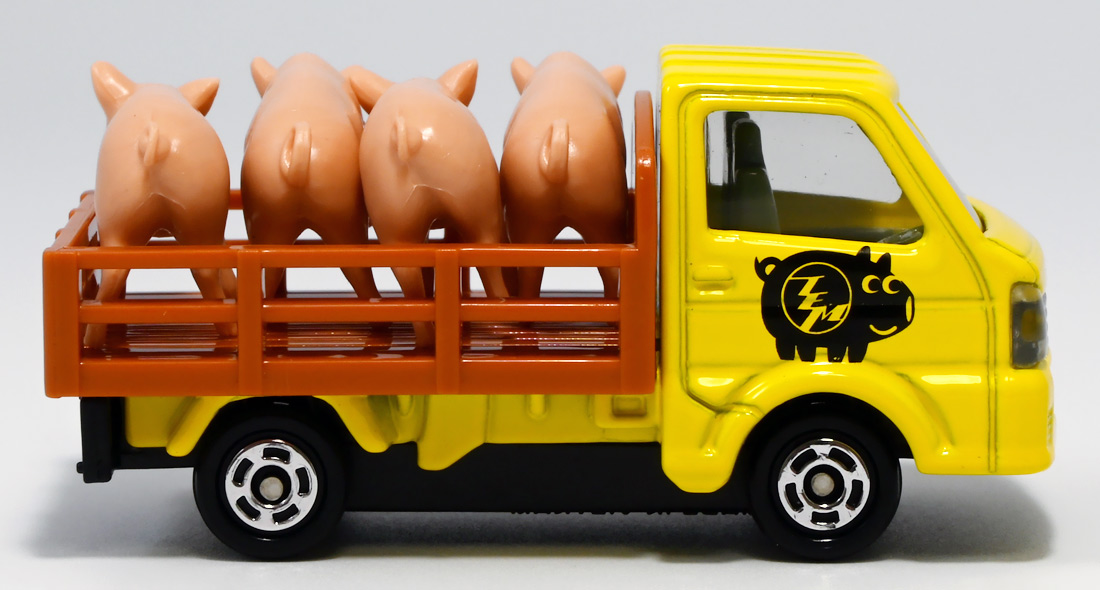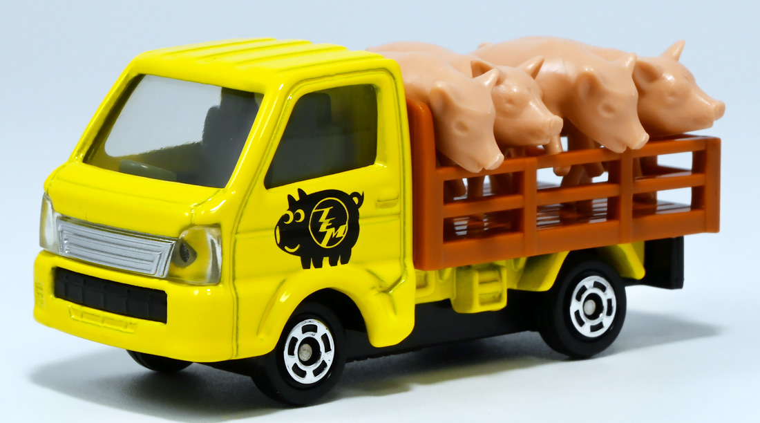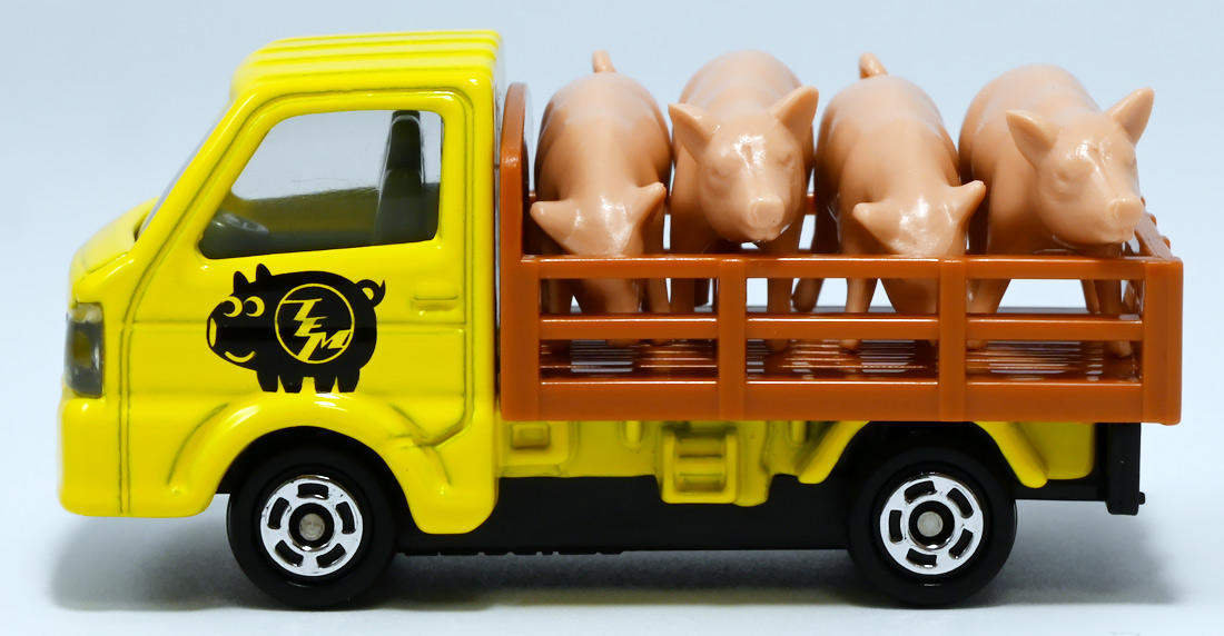 ■トミカイベントモデル No.17 スズキ キャリイ ぶた運搬トラック ![]() 2025年4月25日発売 / 880円(税込) こちらは「トミカ博」などのトミカイベント限定で販売されている「トミカイベントモデル」の2025年新作。 過去にも色々出ている「ぶた運搬トラック」の新たなカラーバリエーションぞよ。 ![]() 一応専用箱だけど限定物らしく文字だけタイプ。 ![]() 「スズキ」のライセンス商品なのでちゃんと箱にロゴが入っているぞよ。 ![]() 限定物でも口に入れない! ![]() ぱかっと開封! ミニカー一台におまけで豚フィギュアが入っている!! ![]() ぶた運搬トラック登場! サイドにデフォルメされた蚊取り豚っぽいマークが入っていてとても愛らしい。 トミカイベントモデルの証として「TEM」のロゴも入っているぞよ! ![]() こちらは1980年7月に発売され、2001年まで長期に渡り販売されていた人気トミカ、 「スズキ キャリィ 家畜運搬車」のリメイク的一台みたいぞよね。 元は荷台に藁と豚二匹を積んでいたが、本商品では藁が無くなり四体に増量。 ミニカー部分もモデルチェンジしてリニューアルされているぞよ。 ![]() この2025年バージョンは黄色トラックだけど、過去には水色バージョンがイベントモデルとして登場。 一般販売版では「トミカ ようこそ!トミカ牧場トラックセット」に青いバリエーションが入っていたぞよ。 ![]() ぶたおしり。 ![]() バリエーションによっては肌色豚と黒豚、二種類乗っている事もあるが、 本商品は肌色豚で統一されている。 ![]() これから出荷されるとも知らず・・・ 穏やかな表情のぶたであるぞよ!! ![]() トップ。 勿論豚は乗り降り可能。 荷台には木目調のモールドが入っています。 ![]() シャーシには2014年登場の1/55スケールとある。 どうやら元は「トミカ No.57 スズキ キャリイ 移動販売車」で、 荷台にはパネル開閉可能なケバブ屋さんが乗っていたようだ。 ![]() 付属の豚フィギュア。 ポーズは二種類あり、足と首の角度が微妙に違う。 こちらは正面ぶた。 ![]() こっちは俯きぶた。 恐らく豚フィギュアは旧家畜運搬車の流用っぽいぞよね。 ![]() 豚フィギュアとトミカを組み合わせればほんのちょっとした情景も作る事が出来る! 一台で遊び方無限大な人気パッケージぞよ!! ![]() 一般販売版ではロングタイプトミカで牛さんを運ぶ家畜運搬車が登場しているぞ! 車体も動物もノンスケールですがご愛敬。 ![]() わちゃわちゃわちゃ。 お値段据え置きで動物フィギュアがいっぱいおまけに付いてくるとはお買い得なのだ!! ![]() 勿論ぶたさんもロング家畜運搬車で運ぶ事が出来る! 組み合わせ遊びが捗るぞよ!! ![]() 牛さんはトラックの荷台にはやや窮屈ですが、細かいとこはまぁ良いでしょう・・・! ![]() すくすくと育った家畜たち! さあ、みんな〜! トラックから降りるぞよ〜!! 今日は楽しい楽しい所へ連れてきてあげたからね〜。 ![]() こうして豚さんも牛さんも恐竜達の血肉となったのでした! 手塩にかけて育てた生き物をお肉にするのはわたくしも辛い・・・ッ! しかしこれが定めであり、生命の摂理であるぞよ・・・! 残酷だ、可哀想、家畜を殺すのは止めて!と叫ぶおろかなる菜食主義者ども・・・! キミ達が常日頃からカリカリしているのは、野菜ばっかり食っていて栄養が足らんのだ! 全人類、肉を食うべし!! もっとも、これはわたくしの考え方なので 野菜だけ食ってカルマを溜めず生きていきたいと言う君の主張をことさら正そうとも思わん。 そりゃ好きにしなされ。 それだから君達も肉を食うものに説教をしないでいただきたい。 それぞれ不可侵のテリトリーと言うものがある事を心得るぞよよ!! ![]() という事で可愛いぶた運搬トラックでした! イベント限定なのでトミカ博を要チェックぞよ! ちなみにわたくしはおみやげでいただきましたぞよ。 :このリンクを踏んで何かポチるとわたくしにささやかな報酬が入りサイトの運営費となるのでよろしくぞ! ・「トミカ ジョブレイバー TJBDX エクシードジョブレイバー 警察消防救急 超越DXセット」 ・「トミカ ジョブレイバー TJBDX ハイパーレスキューブレイバー レッドサラマンダー&スーパーアンビュランス DXセット」 ジョブレイバーの超越合体・・・既存の玩具の中に隠し合体パーツが隠されていて、 発売数か月後にアニメ展開に合わせて情報解禁って凄くないぞよか!? こんな事ができるんですね〜。 ▲TOP |