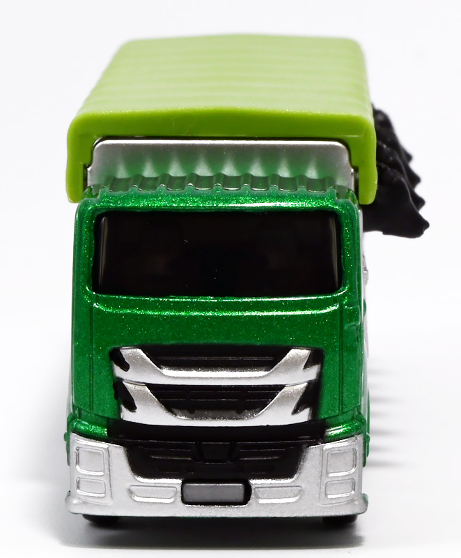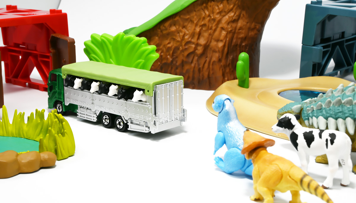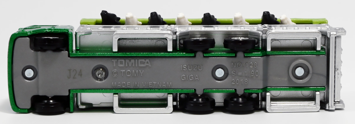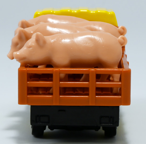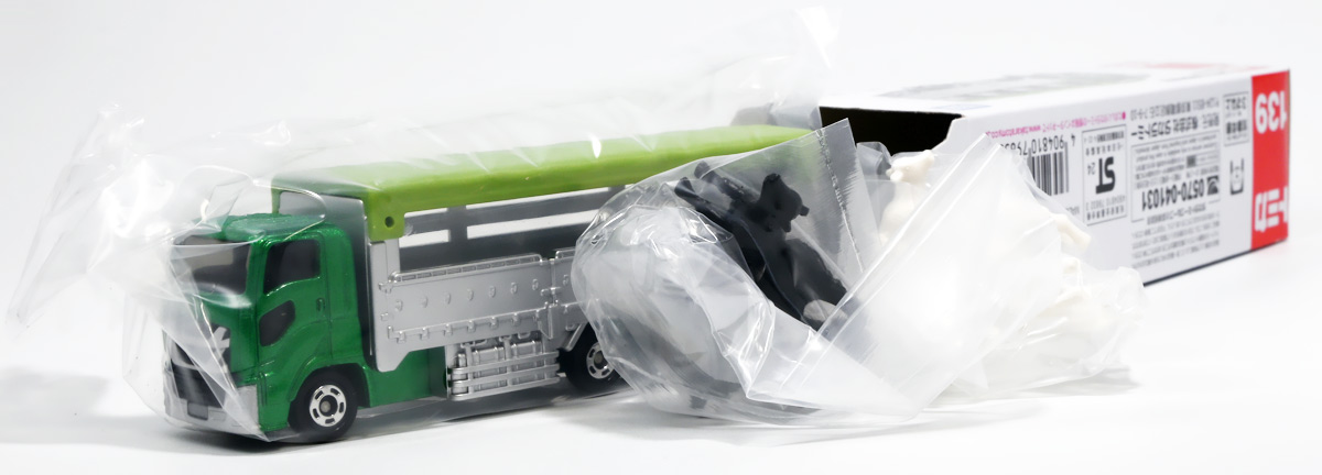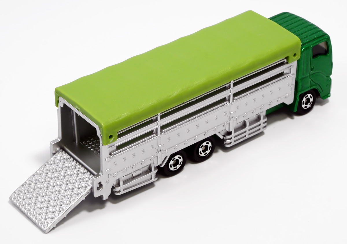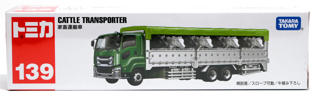 ■ロングタイプトミカ No.139 家畜運搬車 ![]() 2019年9月21日発売 / 1100円(税込) ロングタイプトミカで新たに登場したロングな家畜運搬車! おまけ&ギミックもりもりの傑作ぞよ!! ![]() パケ裏には解説が入っていて勉強になるぞよ! ![]() 対象年齢3才以上! ![]() 集めよう! 楽しさいっぱい! ミニカーの王様 ![]() それではパカっと開封! おまけがいっぱい入っている! ![]() ロングタイプ「家畜運搬車」! その名の通りおろかなにんげんどもが糧とする家畜達を運ぶための運搬車であるぞよ! 運ぶものは牛、馬、豚、羊、鳥など様々だが、本商品では白黒の牛さんフィギュアを運搬している。 ![]() 衛生管理が簡単で洗浄しやすく、 また腐食しにくいステンレス製やアルミ製ボディがシルバー彩色で再現されている。 このギラギラ感、たまらんぞよね! フィギュアを乗せるとちゃんと牛さんの頭が覗くようになっていて可愛いぞよ。 ![]() 特徴的なフロントからキャブのモチーフは「いすゞ・ギガ」大型トラックみたいぞよ。 本商品では緑のラメ塗装で可愛い感じ。 ![]() 荷台のディテールなど実に良く出来ている。 トミカでは片側が開閉、もう片側は柵で塞がっており牛の向きが決められているが、 実車は普通左右対称みたいぞよ。 ![]() おろかなにんげんどもが牛乳を飲めるのも焼き肉を食えるのも、 陰でこの運搬車が働いているからこそぞよ! 日常を支える立派なお仕事なのだ!! ![]() 牛が暴れてもびくともしない堅牢なリアハッチ。 ![]() ボトム。 箱にライセンス記載はないがシャーシにはちゃんと「ISUZU GIGA」とモチーフの刻印がある。 スケールは1/90のようだ。 ![]() パカっと開封! なんと帆の着脱が可能となっている! これにより牛フィギュアの乗り降りが出来ると言う訳ぞよ! ![]() 荷台内部はべこちゃんが滑らないように滑り止めがついています。 細かい所まで良く出来ているぞよ! ![]() おまけの牛フィギュア、黒牛と白牛で二体入っている。 わたくしはてっきり白黒の色違いで2種入っているだけと思っていたが・・・、 ![]() よく見ると造形が違う!! 黒牛はオス、白牛はお乳が造形されていてメスじゃないか!! なんと凝った仕様であるぞよ! ![]() 黒毛和牛と白い乳牛と言うワケぞよね! 国内の乳牛は殆どホルスタインでまだら模様が普通だが、 本商品はおまけなので無彩色フィギュアなのはご愛敬だ! ちなみにイベントモデルとして本商品のカラバリ「トミカ牧場動物移動トラック (うま)」も出ており、 そちらには茶色と黒の馬フィギュアがおまけに入っているぞよ。 ![]() リアハッチのスロープが展開し、牛の積み下ろし遊びが楽しめるぞよ!! これ一つで牧歌的な情景が作れる良いセットではないか〜。 ![]() 牛を綺麗に並べる時は帆を外して整頓しましょう! トラック自体も2パターンで遊べる良いトミカ。 何か他のフィギュアを乗せて遊んでも楽しいぞよね! ![]() これは可能性を感じる一台ですぞよ・・・!! ![]() ここはわたくし玩具牧場。 可愛いべこちゃん達をすくすくと育てています。 ![]() さあ、みんなトラックに乗るぞよよ〜! これから楽しい場所へ行くんだよ〜!! ![]() 哀れドナドナされてゆくべこ達・・・ しかし悲しむ事は無い、彼らはお肉やミルクとなって我々の血肉となり、共になるのだ! さらば、べこ達・・・いや、立派な牛さんよ! 次は食卓で会おう!! ![]() という事でロングタイプトミカの傑作、家畜運搬車でした! これはおまけも豪華でオススメの一台ぞよ!! ・このリンクを踏んで何かポチるとわたくしにささやかな報酬が入りサイトの運営費となるのでよろしくぞ! 「トミカ 家畜運搬車」 「Yes!プリキュア5GoGo!×サンリオキャラクターズ マルチリングプラス Lサイズ ミルキィローズ」 ▲TOP |