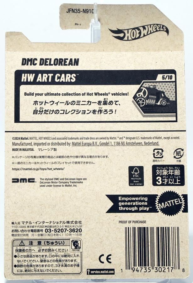 ■ホットウィール(Hot Wheels) ベーシックカー DMC デロリアン JFN35 ![]() 2025年7月5日発売 / 462円(税込) ホットウィール7月のベーシックカーのうち、単品パッケージとして発売された一台。 本来ステンレスボディがウリのDMC-12をペイント仕上げしたカラバリぞよ! ![]() 「HW ART CARS」チーム所属のペイントカー。 台紙は国内向けに日本語表記となっています。 ![]() ぱかっと開封! エメラルドグリーンのラメラメボディが格好良いデロリアンぞよ! ![]() DMC-12は過去に何度も紹介しているので細かい説明は割愛とする! いつものベーシックカー仕様でやはりフロントのDMCロゴは再現されていない・・・。 ![]() ロゴ無いとなんとなく締まらないぞよね。 みんなブリスターを開封せずに横からしか眺めないのでこう言う事になってしまうぞよよよよ・・・。 ![]() 初期の仕様ではリアハッチの開閉ギミックがあったホットウィール・デロリアン。 本商品はリニューアル後の金型なのでギミックは削られている。 ![]() 勿論おしりもさっぱり彩色されていないぞよ。 ![]() トップ。 サンダースパークがイカした弾ける一台ぞよっ!! ![]() ボトム。 ちゃんとライセンス商品なのでシャーシには「DMC」のロゴが刻印されています。 ![]() と、あっさり紹介したがこのペイント仕様、 2025年2月のベーシックカーの完全なる色違いなので改めて語る事もないのであった。 見比べてみると色以外ではホイールの変更が最も大きな違いぞよね。 :このリンクを踏んで何かポチるとわたくしにささやかな報酬が入りサイトの運営費となるのでよろしくぞ! ・「ホットウィール(Hot Wheels) ベーシックカー DMC デロリアン」 ・「ハピネット(Happinet) R/C バック・トゥ・ザ・フューチャー タイムマシン Part2」 ▲TOP |