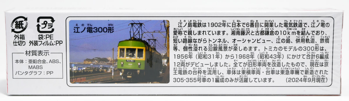 ■ロングタイプトミカ No.150 江ノ電300形 ![]() 2024年9月21日発売 / 1100円(税込) ロングタイプトミカで登場の「江ノ電」! ギミックもりもりの遊べるミニカーぞよ! ![]() 江ノ島電鉄のはじまりから、トミカのモチーフとなった車両まで解説されている! これ普通のトミカ箱にもつけてくれぞよーっ! ![]() ナンバー150で通年販売中のパッケージ。 江ノ島電鉄株式会社のライセンス商品ぞよ。 ![]() 集めよう! 楽しさいっぱい! ミニカーの王様! ![]() それではぱかっと開封! お、台紙が凝ってるが後述ぞよ。 ![]() おまけでパンタグラフが2パターン入っている。 どちらか選択して組み立てよう! ![]() 完成! ロングタイプトミカ「江ノ電300形」ぞよ! 緑の車両が可愛い一台ぞよね! ![]() 明治35年(1902)、藤沢〜片瀬(現江ノ島)間を開業して後100年の歴史を誇る江ノ島電鉄! 日本で6番目に開業した電気鉄道であり、 本商品のモデルとなった300形は昭和31年(1956)〜昭和43年(1968)にかけて 合計6編成12両が旧型車両を改造する形でデビュー。 現在は305-355号車の1編成のみが健在であるぞよ。 ![]() という事で本商品はモチーフがはっきりしており、車体のナンバーなどモデルに基づいている。 こっちの車両は305号車で藤沢-鎌倉行と表記。 ![]() 反対側は355号車が連結しているのだ。 旧車両を改造したものだが幾度も改修されており、 この305編成は室内が更新され冷房装置を搭載、駆動系も近代化改造されており高性能化。 更に1000系以降の各型式とも相互連結が可能となっているぞよ。 ![]() 閉じたバージョンのパンタグラフも付けてみたぞよ! 1個のパッケージで二両編成、しかも2バリエーションに組み替えて遊べるとはお得なのだ! ![]() 江ノ電のトミカと言えば、江ノ電グッズショップ限定の特注トミカ、 「トミカ(ロングタイプ)江ノ電1000形」も発売されており、 一般販売の本商品300形と連結できるパーツが同梱されているぞよ。 限定版と合体できるとは・・・かなり気合の入った仕様と言えるだろう!! ![]() トップ。 ![]() 真ん中の連結器はちょびっと左右に振る事が出来るぞよ。 ![]() ボトム。 更に、この江ノ電には可動ギミックが搭載されており・・・、 ![]() このクリアパーツのスイッチを切り替える事で・・・、 ![]() な、な、なんと! ドアが連動して開閉するのだ!! なんと凝った仕様なのだーっ!! ![]() このギミックによって乗り降り遊びが楽しめるぞよ。 可能性の幅が広がるぞよね! ![]() スイッチは左右独立しているので反対側だけ開けたり閉めたりも出来ちゃいますよ。 ![]() そして、嬉しいおまけがもう一つ! なんと台紙が江の島の背景となっているのだ!! ![]() 切り出して組み立てる事で江の島の情景が完成! トミカを乗せて遊んじゃおう!! ![]() アニメ「SLAM DUNK」のOPに登場する「鎌倉高校前1号踏切」の背景も入っていて抜かりなし・・・! ここは単なる江ノ電の通過点に過ぎないのだが、アニメのせいで聖地化して、 海外から外国人どもが写真を撮りに現れるようになったが、 中には傍若無人で胡乱な者もいて、信じ難い事にその辺でうんちをするので 現地の人々は大変に困っていると言う・・・。 元々観光地じゃないからお金も取れないしトイレもないし困ったもんだ! 有料うんちスポットを作ってやってください!! ![]() 江の島と言えばしょっちゅうアニメに出てくるぞよね。 最近だとわたくしの大好きなロボットアニメの新作 「想星のアクエリオン Myth of Emotions(2025)」の舞台ともなりベクターマシンが発進していたが・・・ このアニメマジで迷作でさ〜・・・。 設定の開示に終始しながらもそれがさっぱり視聴者に伝わっておらず、 見ていたおたくは最終回に至っても頭がハテナ状態でぽかーんとしてしまったのだ! ポップな絵柄とリアルな人物、現在と過去でキャラデザが異なり、 ロボットの必殺シーンではなぜかカートゥーン風の演出が挿入。 実写コンテを使った芝居作りなどなど、監督曰く「奇を衒った」趣向を様々凝らしているのだが・・・ これらが全くドラマに繋がっていないのは、正しく奇を衒っただけになっちゃってるじゃんよ! 最初のアクエリオンは面白かったのに続編はずっと低空飛行でわたくしは悲しいよ! ![]() おっと、関係ないどうでも良い事を書いてしまった。 凝ったギミックに情景台紙まで入った江ノ電トミカ! 思い入れのあるおろかなにんげんどもにも、そうでないにんげんどもにもおススメできる名作ぞよ!! ![]() ちなみにスケールは1/162とパケに記載がある。 このスケール表記あったりなかったり、ないと思えばシャーシに入っていたりするのはトミカ七不思議の一つぞよね・・・。 :このリンクを踏んで何かポチるとわたくしにささやかな報酬が入りサイトの運営費となるのでよろしくぞよ! ・「ロングタイプトミカ No.150 江ノ電300形」 ・「プラレール 江ノ電 300形 (江ノ島電鉄・江の電)」 ▲TOP |