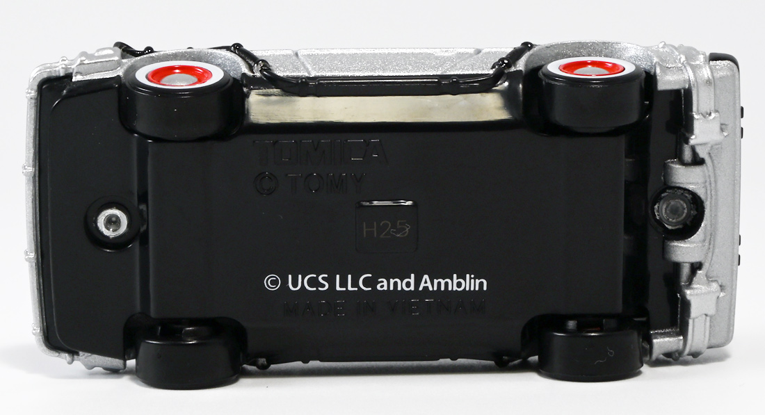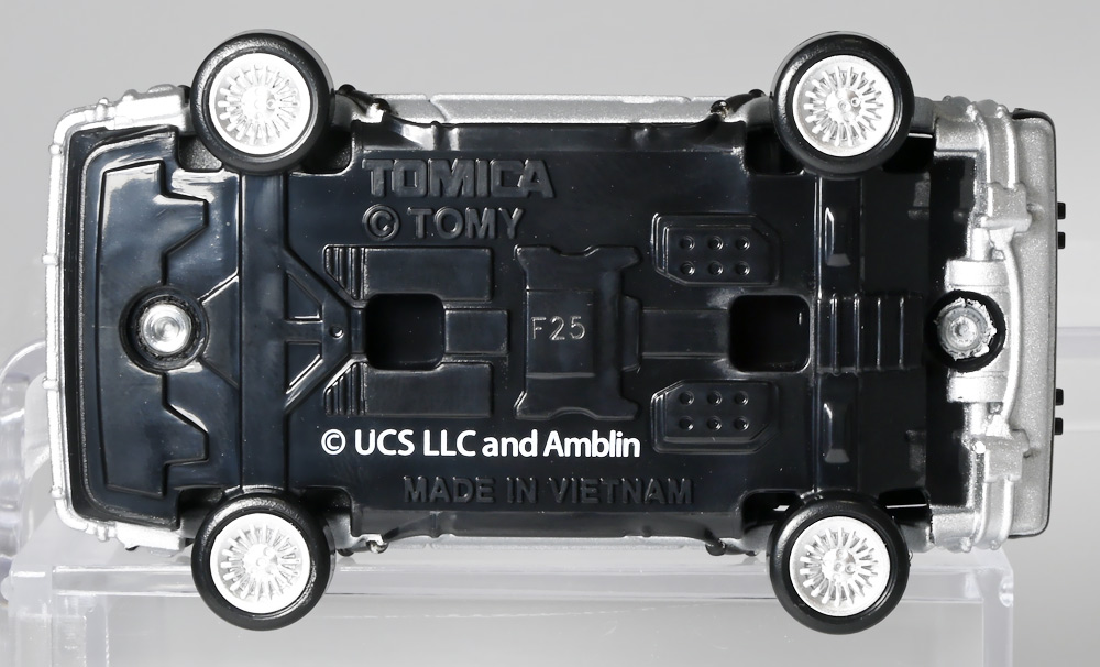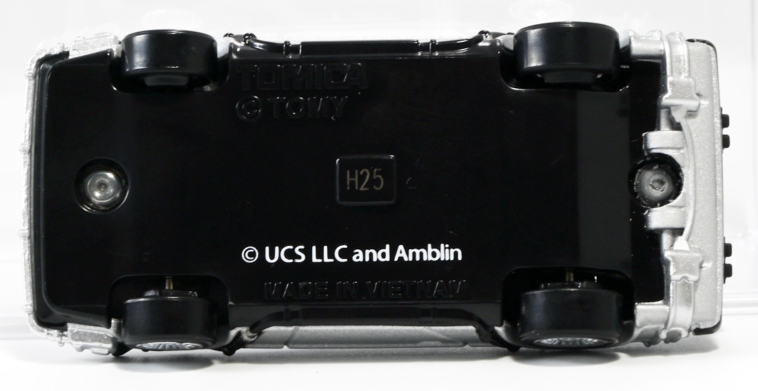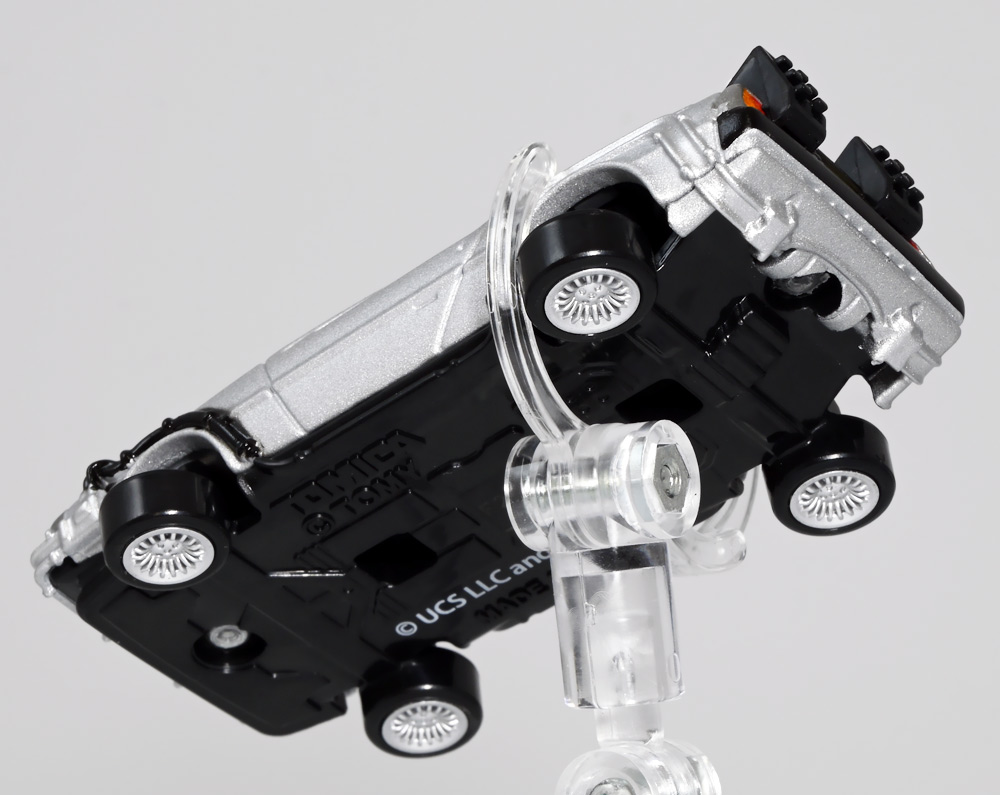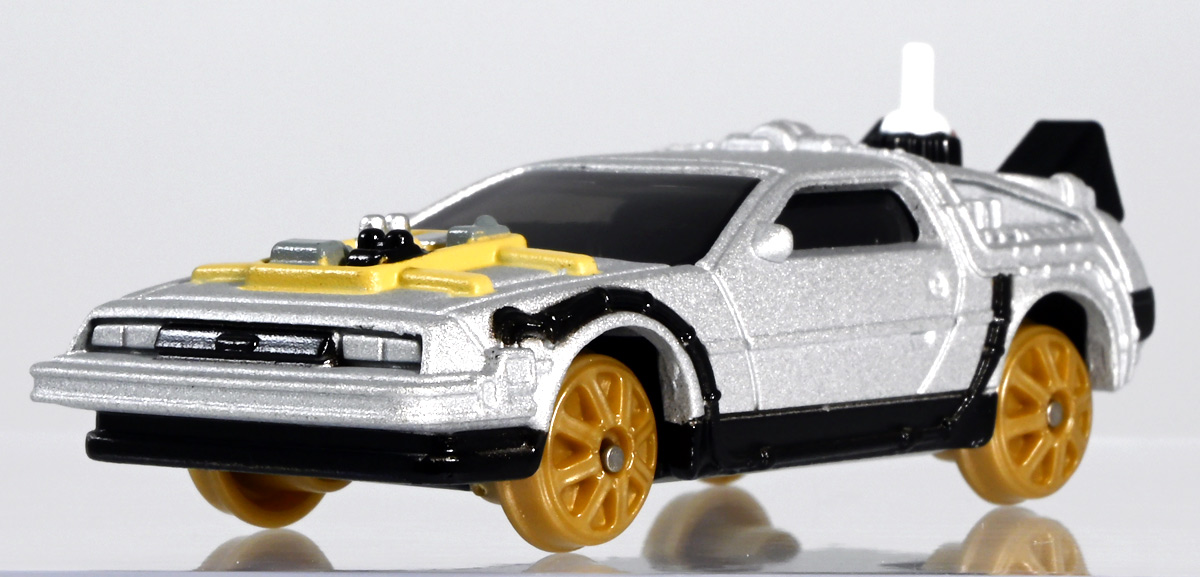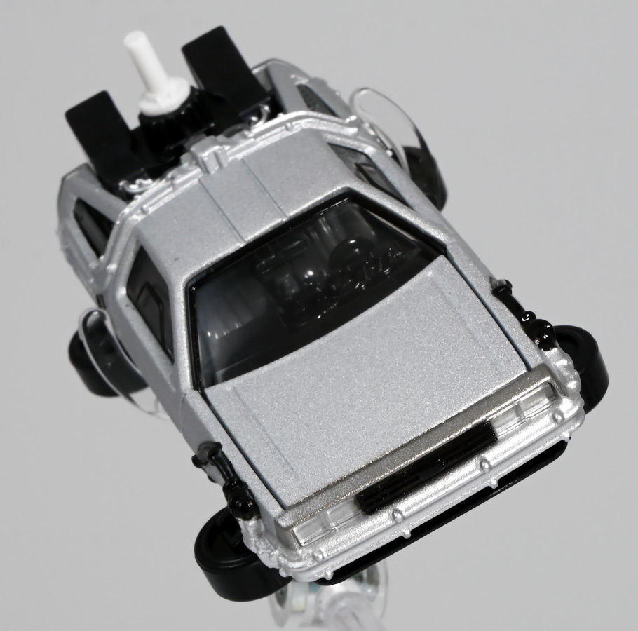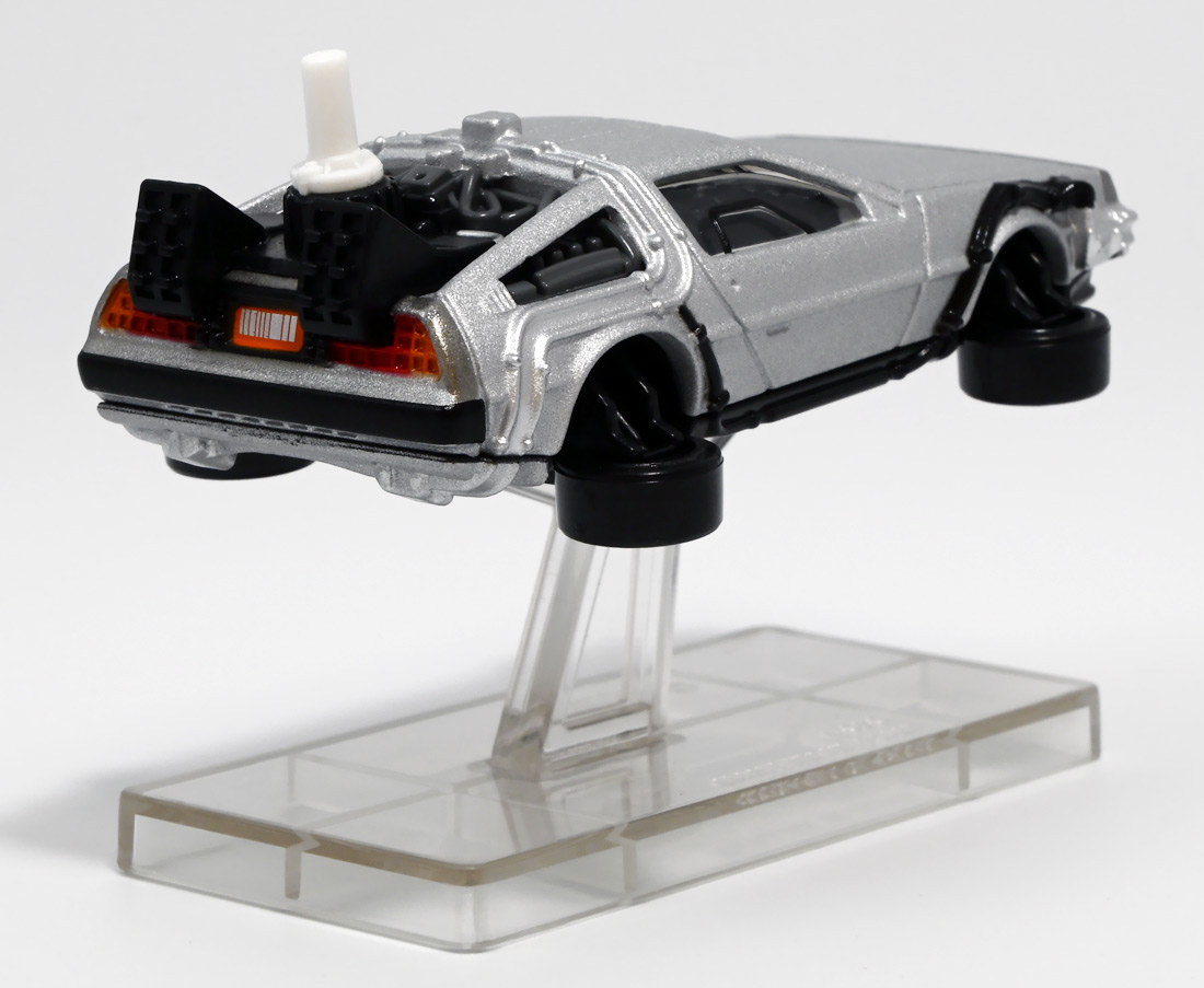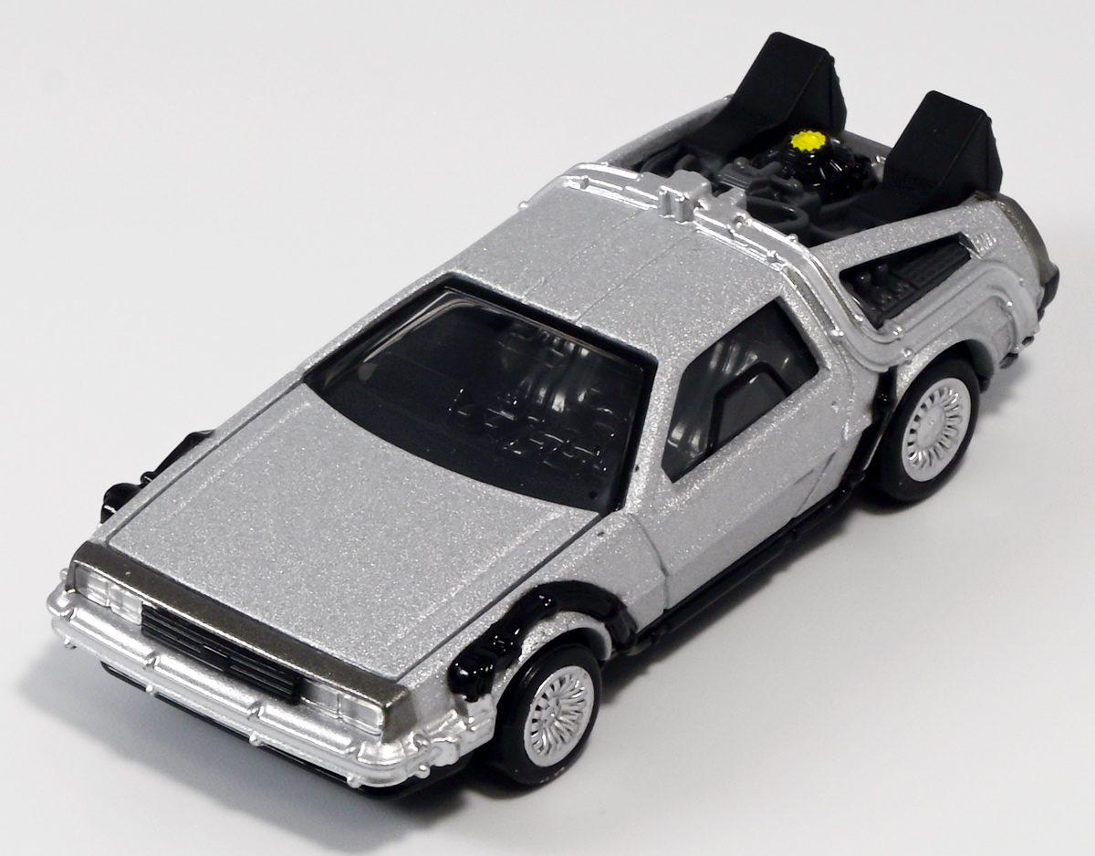 ■トミカプレミアムunlimited 11 バック・トゥ・ザ・フューチャー タイムマシン(PART2) ![]() 2025年8月16日発売 / 1320円(税込) 映画「バック・トゥ・ザ・フューチャー(1985)」より、「PART1」のラストで登場し、 「PART2(1989)」でメインに活躍したフライングホイール仕様のデロリアン・タイムマシンが 満を持してトミカプレミアムアンリミテッドに登場ぞよ! ![]() パッケージはいつもの大きめの紙箱。 映画登場メカとしてのトミカ化である為、実在車両である「DMC-12」の名義は使用されておらず、 パッケージの何処にも「デロリアン」の名前は入っていない。 検索する時も「デロリアン トミカ」ではなく「タイムマシン トミカ」で検索する必要があるぞよね! ![]() 「BTTF2」のロゴは入っていますよ。 一般販売版のタイムマシントミカもこれで出揃い、とりあえずはラストとなった。 ![]() 「トミカプレミアム unlimited」は映画やドラマ、 まんがなど、様々な創作物に登場する名車をラインナップするトミカの上位カテゴリ。 ナンバー付きの通年販売パッケージとナンバー無しの「SPECIAL」パッケージが存在し、 本商品はナンバー11として通年販売ラインナップとなっている。 最近だとドラマ「TOKYO MER」に登場する「ERカー」があまりにも人気過ぎて、 「SPECIAL」なのに緊急再販がかかったがそれもあっと言う間に売り切れてしまう程であった。 と言う事で超絶人気があったらSPも再販されるみたいぞよ。 ![]() パカっと開封! 箱は大きいけど中身はちっちゃいの。 今回はおまけで台座が入っています。 ![]() 満を持して登場! デロリアン・タイムマシン PART2仕様ぞよ!! もうこれでアンリミverも四つ目なので新鮮味は正直ないけど、 やっぱり空を飛ぶこれが欲しかったんですよ〜。 ボディは過去に発売された「PART1」、後部メカは「PART3」バージョンを踏襲しており、 シャーシが新規造形でフライングホイール形態を再現している。 ![]() 新規造形シャーシはおまけのクリア台座と合体可能! 本商品専用なので過去のタイムマシンに流用する事は出来ません。 ![]() 本体を乗せる事で飛行状態のデロリアン・タイムマシンを再現可能ぞよ! これは嬉しい仕様ですね!! ![]() 通称ドクことエメット・ブラウン博士が愛車のDMC-12を改造し作り出したタイムマシン。 初めは小型原子炉にプルトニウムを突っ込んで次元転移装置の燃料としていたが、 未来への転移に成功し、 超小型核融合炉「ミスター・フュージョン」を搭載する事であらゆるゴミを原子レベルまで分解させ 常温核融合によってエネルギーを取り出す事が出来るようにパワーアップ。 更には「ホバー・コンバージョン」を施し、 「フライングホイール」を装着した事で自在に飛行も可能となっているのがこの「PART2」仕様ぞよね! タイヤがぺたんと寝て空を飛ぶこの仕様、 劇中の2015年では一般に普及しており極めて普通の仕組みとは夢のある話だが・・・ 現実では2025年現在に至っても空を飛ぶ車と言うのは完成しなかった・・・。 なんか大阪の万博ではでっかいドローンの様な奴を「空飛ぶ車」と呼んでいるようだが・・・ あまりにも情けないぞ、おろかなにんげぇんっ!! 空飛ぶ車と言うならこのデロリアンみたいなやつをじゃーんと展示してみせないかっ!! ![]() 劇中では改変された未来を元に戻す為に大奮闘するデロリアン・タイムマシン! 今回は実車名義が使えない(?)為かフロントにある筈の「DMC」のプリントが「PART3」バージョンから引き続き再現されていない・・・。 シャーシは新規造形だが撮影用フックのディテールなど過去の造形が踏襲されている。 この辺は過去販売バージョンのレビューも参照の事(後述 ![]() 車体後部からはみ出したメカ部分は「PART3」バージョンと同じ。 引き続きミスター・フュージョンが造形され、パイプの一部がシルバー彩色されているぞよ。 ![]() そしてナンバープレートも未来仕様のバーコード。 ドクが2015年の未来で登録したもので 以後デロリアン・タイムマシンのチャームポイントとなったものぞよね。 ![]() と言う事でほぼほぼ過去に発売されたバージョンの流用なのだが、 「1」、「2」、「3」それぞれナンバー付きで通年販売とはデロリアンの人気の高さが窺えるものとなっている。 ![]() 新規造形されたシャーシ。 フライングホイールはきちんとシルバーで彩色されており、ディテールなどは過去のバージョンを踏襲。 トミカプレミアムアンリミテッドではシャーシがのっぺりとディテール無しである事が多いが、 本商品は煽り構図になる関係できちんとメカディテールが施されているぞよ。 コロタイヤは設けられておらず、トミカなのに転がし走行遊びは出来ない潔い仕様だ。 ![]() 運転席のメカディテールなども過去バージョンから引き続き、 劇中を再現したものが使用されている。 ![]() 一番人気の飛行形態デロリアン! これを最初に出しちゃうと他のバリエが売れなくなるから最後に出すとは・・・ タカトミ・・・なかなか鋭いぞよねっ!! ![]() 
