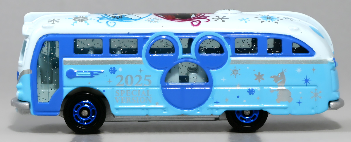 ■ディズニーリゾートクルーザー トミカ 2025 SPECIAL VERSION アナと雪の女王 ![]() 2024年12月5日発売 / 1500円 こちらは東京ディズニーリゾート限定販売のトミカシリーズ、 「ディズニー・ビークル・コレクション」より、「アナと雪の女王」デザインの2025年限定版リゾートクルーザーぞよ。 ![]() 「ディズニー・ビークル・コレクション」は「東京ディズニーランド」や「ディズニーシー」、 関連の宿泊施設などで販売されている限定トミカで、 網羅した公式サイトなどが無い為、全貌がさっぱりわからんぞよ。 ![]() 今回もおみやげで貰ったのだが一個1500円とは高級品ぞよね!? しかも同原型のリゾートクルーザー、この後に出たと思われる「ズートピア」版は1600円、 「午年」バージョンは1700円に値上がりしており、出るたびに高くなっているみたいぞよよよよ・・・。 ![]() こんなに薄っぺらい箱なのにーっ!? ![]() 2025 SPECIAL VERSION の文字が入っている。 このレビューを書いているのは正に年末の12月31日・・・ 恐らく本商品は既に終売で、公式ページも消えているみたいぞよ。 ![]() ぱかっと開封! ![]() じゃん! ディズニーリゾートクルーザー2025年ver! 冬の登場なので映画「アナと雪の女王(2013年)」モチーフのラッピングが施されているぞよ! ![]() 「アナと雪の女王」と言えば、ディズニーにさっぱり興味のないわたくしですら、 あの有名な歌のサビの部分だけ延々と聞かされたものであるぞよ・・・。 という事でわたくし、映画を見ていないので本商品に関して語れることが一つもありません! ま〜たまにはこう言うのも良いでしょう・・・! ![]() ![]() ディズニーリゾートクルーザーは ディズニーアンバサダーホテルとパーク、東京ディズニーリゾート・オフィシャルホテルと ベイサイド・ステーション(ディズニーリゾートライン)を結んで走る無料のシャトルバス。 ミッキー型の窓が目印で、車内のつり革もミッキー型と、様々な趣向が凝らしてある可愛い車両ぞよ。 「日野メルファ」を基に、ディズニーの世界観に合った丸みを帯びたボディに改造が施されており、 本商品のモチーフともなっているが、 現在運行中のリゾートクルーザーは代を重ねるごとに普通のバスに置き換わる傾向にあるみたいぞよね。 世知辛い世の中ぞよーっ!! ![]() 可愛い雪のラッピング仕様に、窓もラメラメ成型色、 ホイールもブルーメッキで特別感があるぞよ。 ![]() 1500円もするだけあってラッピングが豪華! バスの形状は実在車両に忠実だが、実際にこのラッピングの車両が走っていた訳では無いみたいぞよ。 ![]() 豪華なキャラクター絵柄を背負っている。 左が触れるものを凍らせる力を持ったプリンセス「エルサ」で、 右が妹ちゃんの「アナ」ぞよ。 おーいっ! いつもよく見る左の娘が「アナ」じゃなかったのかぞよーっ!! ![]() シルバーのシャーシにはディズニーロゴも入っておりおみやげの記念にぴったりぞよね! ![]() トミカのバス色々。 普通のバスと比べてもこのリゾートクルーザーはほっそりしているぞよ。 ![]() かなり情報量の多い豪華なラッピングトミカ! キャラ絵柄が入っていて映画のファンにはたまらないおみやげぞよね! ![]() シール無しで綺麗な絵柄が再現されていると作品を知らなくても嬉しくなるぞよ! ![]() リゾートクルーザー2025年verでした! キャラ絵の入った箱ごと飾っておきたくなる一品ぞよ! :このリンクを踏んで何かポチるとわたくしにささやかな報酬が入りサイトの運営費となるのでよろしくぞ! ・「レゴ(LEGO) ディズニープリンセス エルサのアイスパレス」 ・「マテル アナと雪の女王(Disney Frozen) エルサとこおりのおしろ」 ▲TOP |